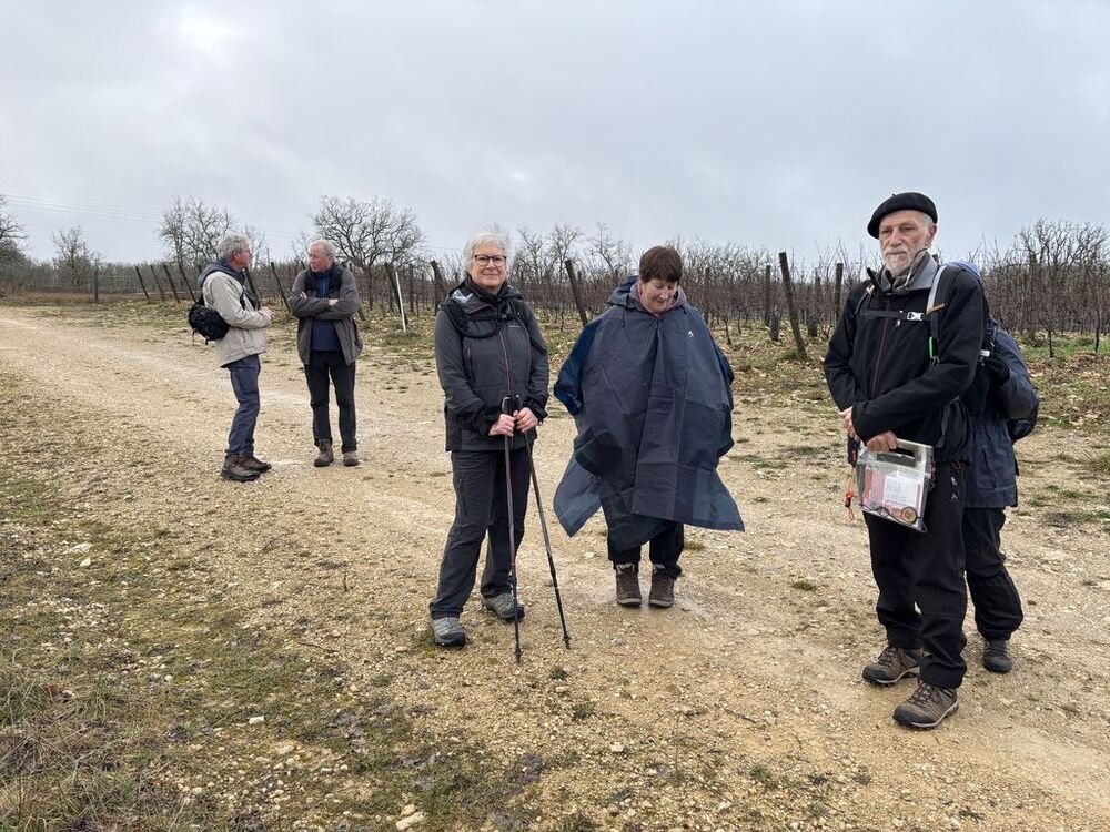 Nous sommes 5 au départ de Puy l’Evêque, renforcés par 3 intrépides qui nous ont rejoint au centre bourg de Trespoux, devant le porche de l’église de la Nativité, édifice roman remanié au XIXème siècle.