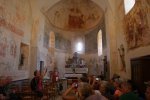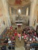 Le repas achevé et arrosé, pas uniquement par quelques gouttes de pluie, la troupe se dirige vers l’église de Martignac où notre conférencière bénévole Andrée capte l’attention de son auditoire par la description minutieuse des peintures murales qui ornent cette église alors qu’au dehors une grosse averse éclate.
