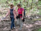 La troupe va parcourir le début du « Circuit des Gariottes », remarquablement balisé par les « Copines et Copains des bois », un petit groupe « d’électrons libres » comme nous l’a dit Francis avec qui nous discutions en cheminant le matin : des passionnés de nature et de balades, qui ont rendu accessibles d’anciens chemins tout en murets moussus et paisibles sous-bois. En ce début d’après-midi, la luminosité donne à la verdure des arbres et des champs des nuances d’une incroyable variété ! Sur le muret qui longe le sentier conduisant vers Machy, des « artistes anonymes » ont habilement posé quelques grès ferrugineux aux silhouettes inattendues ! Une de nos marcheuses rajoute à l’ouvrage un joli « cœur de pierre » !
