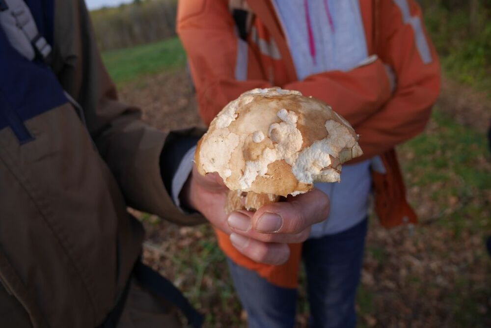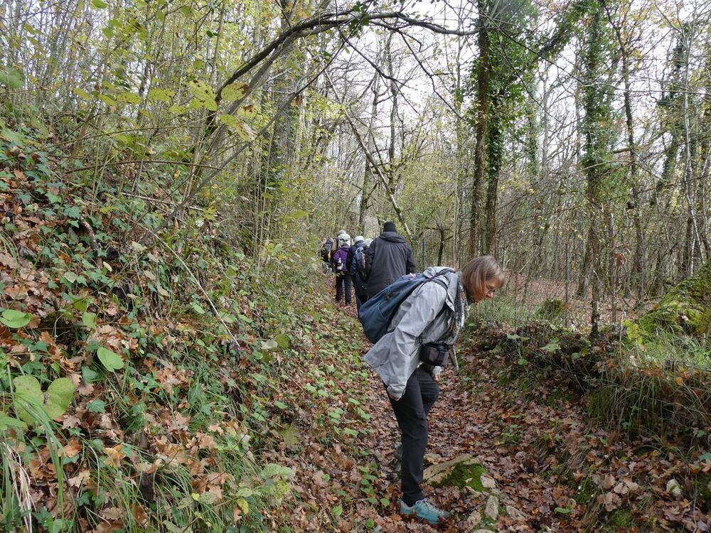 Continuant par une sente boisée, nous nous dirigeons nord-ouest, vers le lieu-dit « Les Grèzes » jadis célèbre pour sa « biquette » où nous retrouvons notre photographe disparue avant de faire découvrir à nos nouveaux randonneurs les ruines fantomatiques de l’église de Saint Avit qui dégagent une grande sérénité favorable à une pause méditative.