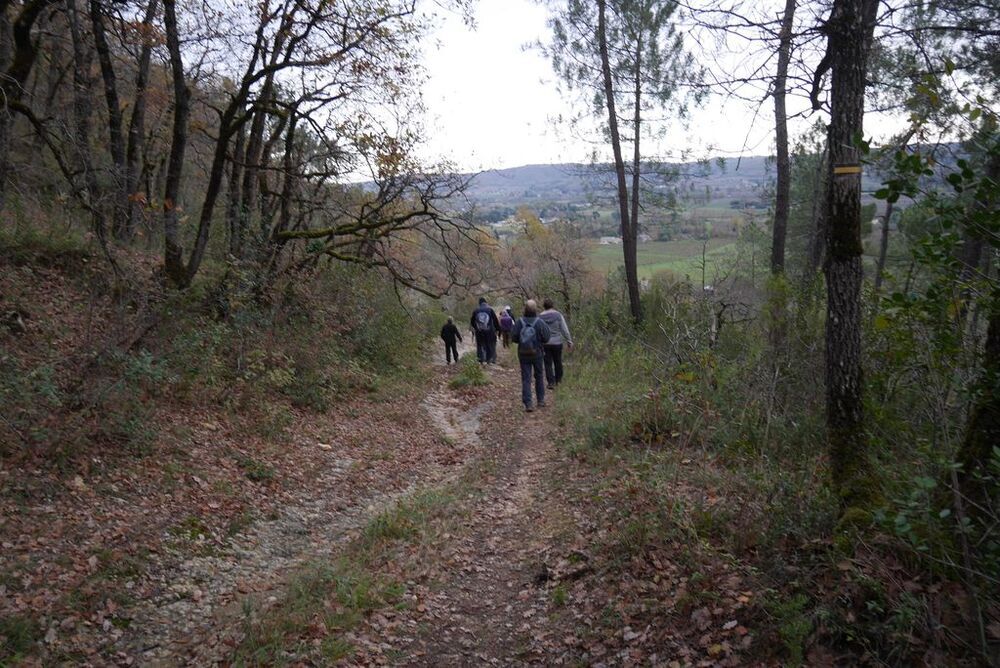 Empruntant le « Cami Roumieu » sur la trace des anciens pèlerins, nous contournons le Pech d’Auriol, avant d’entreprendre avec prudence par un chemin empierré et raviné par les pluies, la descente vers Duravel.