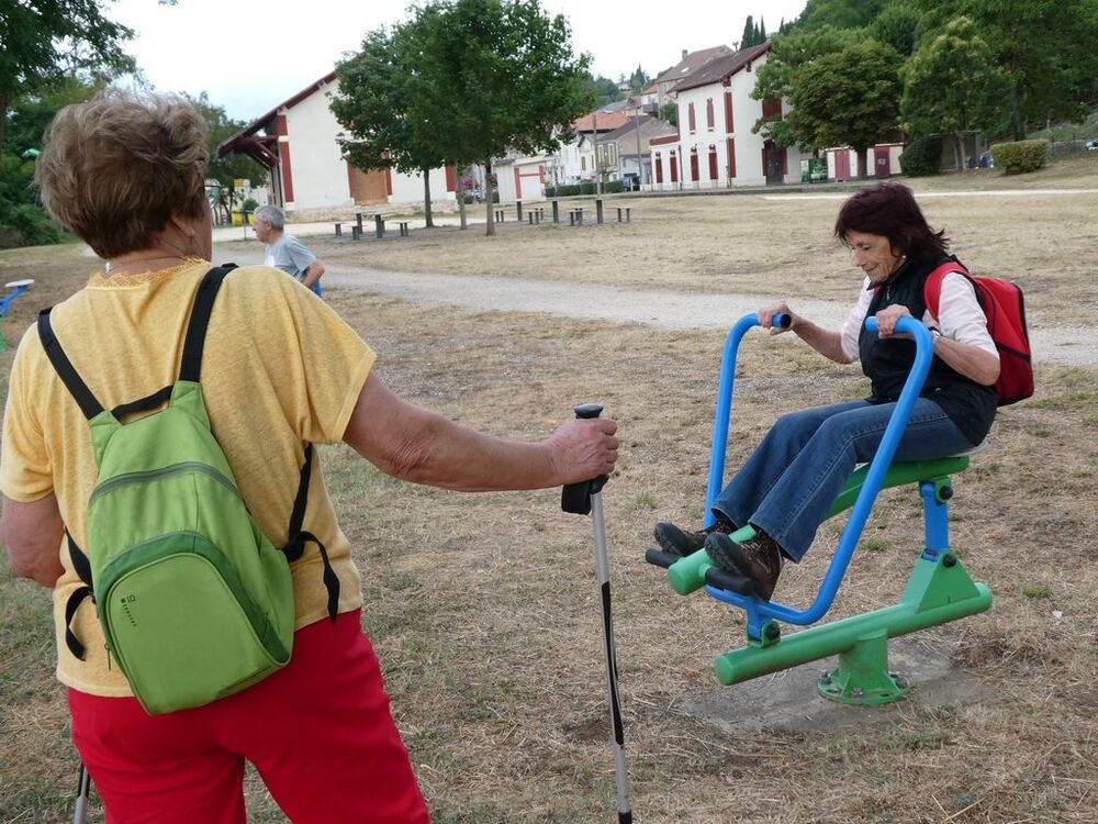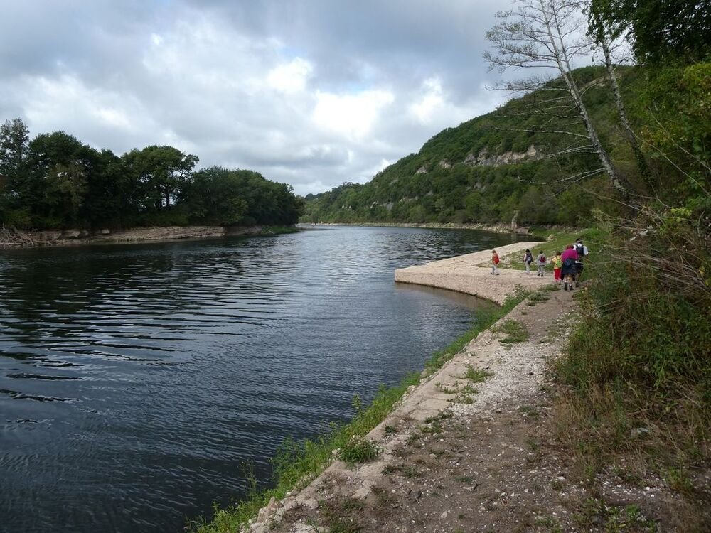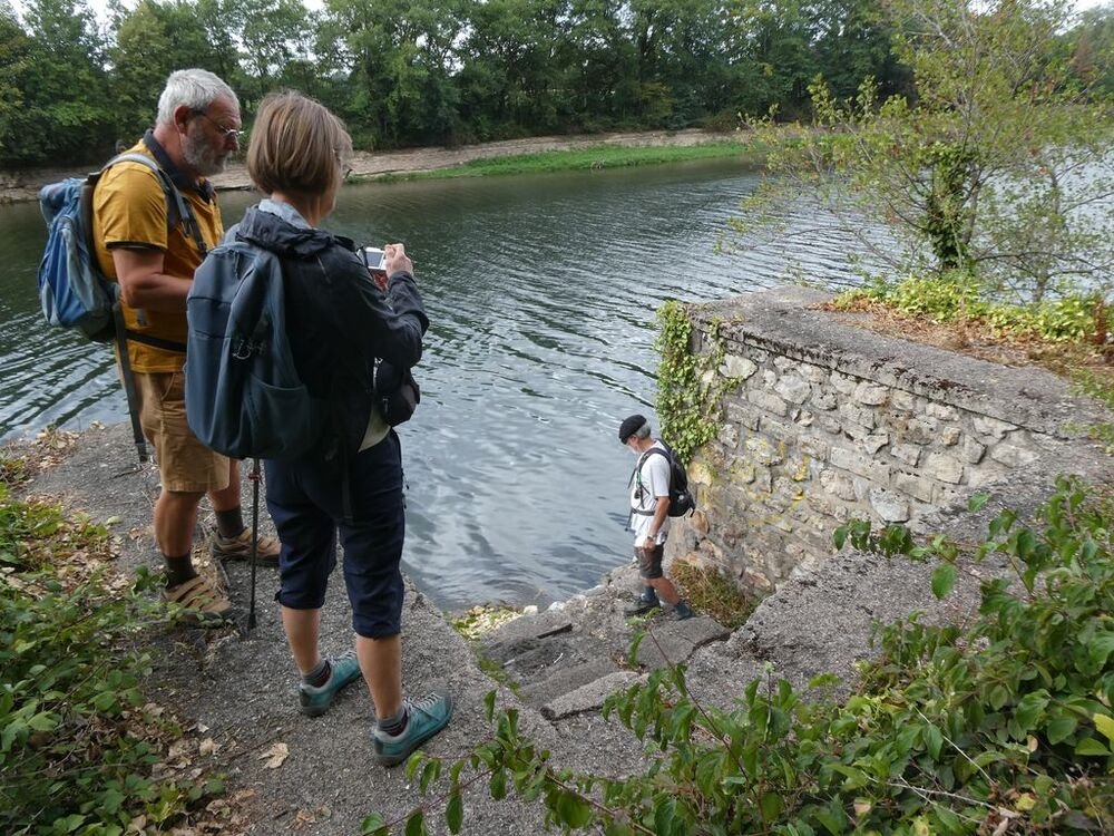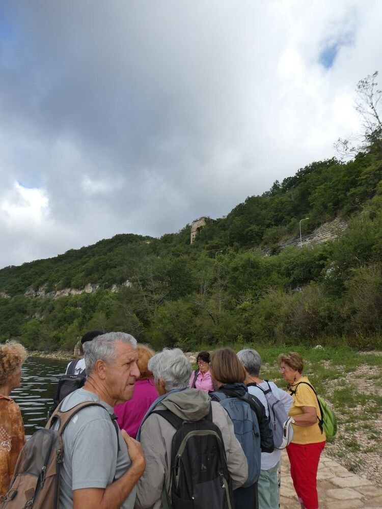 Fort de 14 unités, notre groupe se dirige plein est, sur la voie verte dénommée « Baladoir » en direction du centre bourg de Condat traversant les vieux quartiers jusqu’à la confluence (étymologie du mot Condat) sous le pont Napoléon, de la Thèze et du Lot.