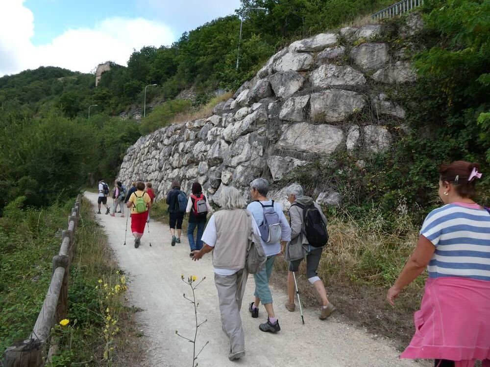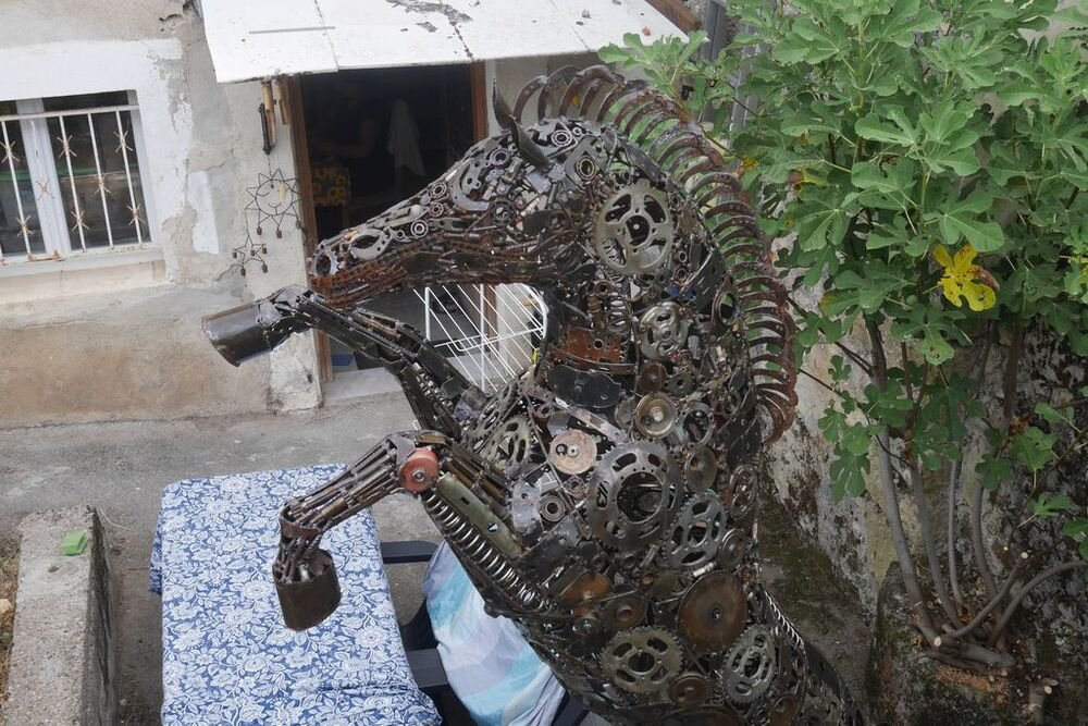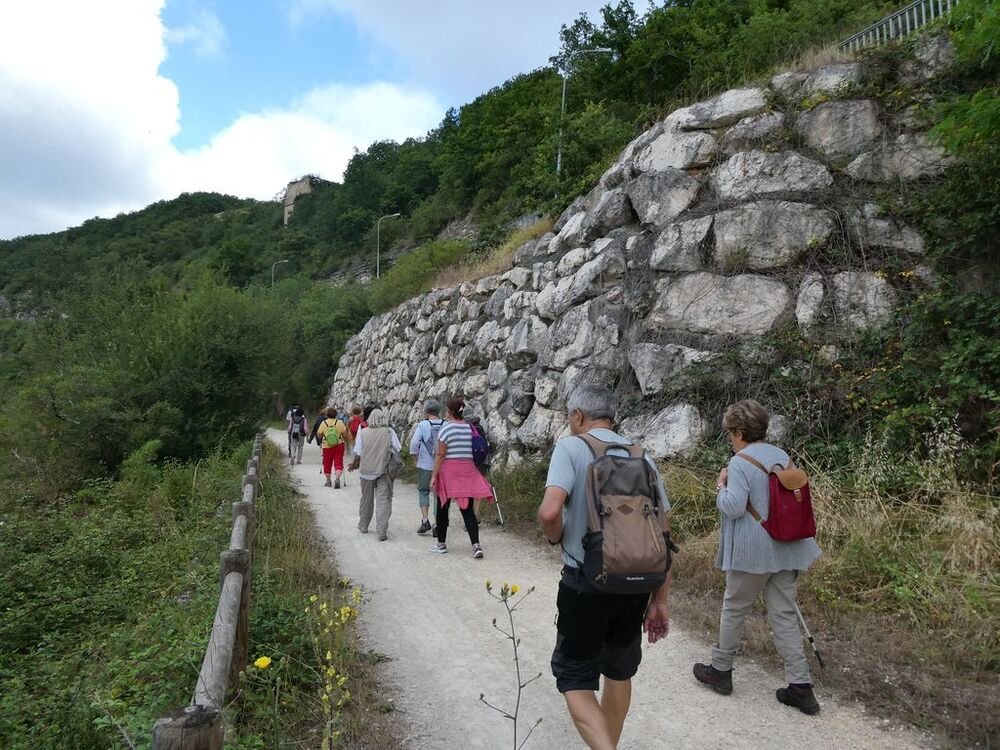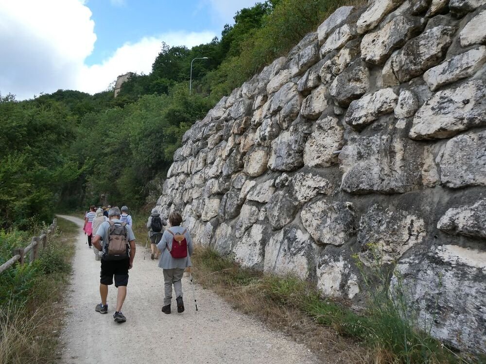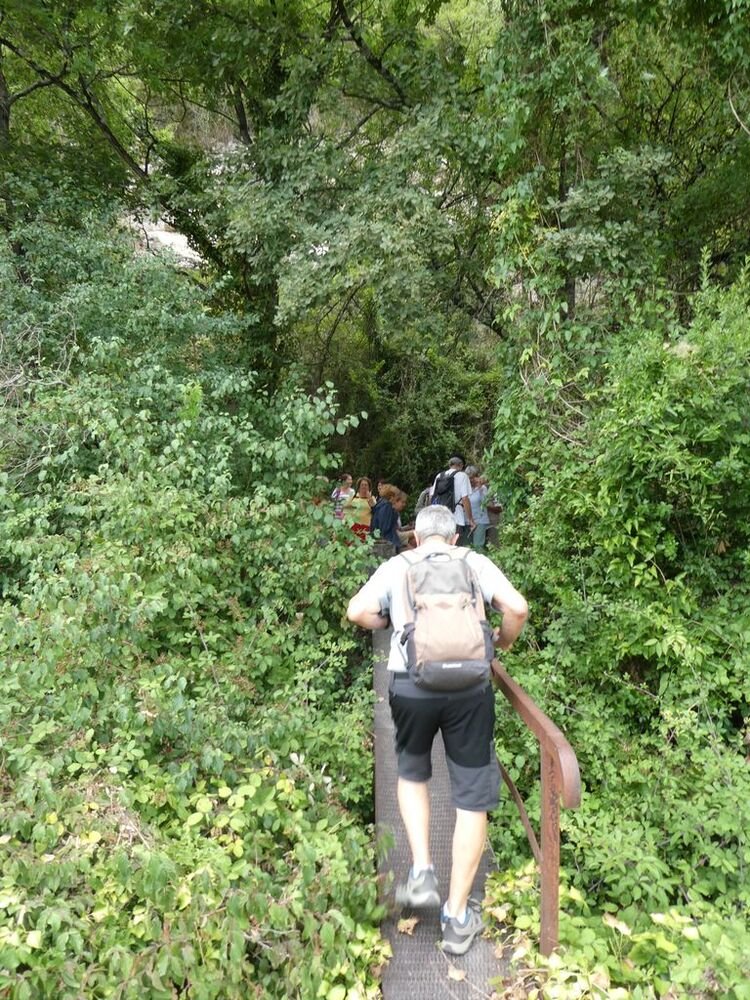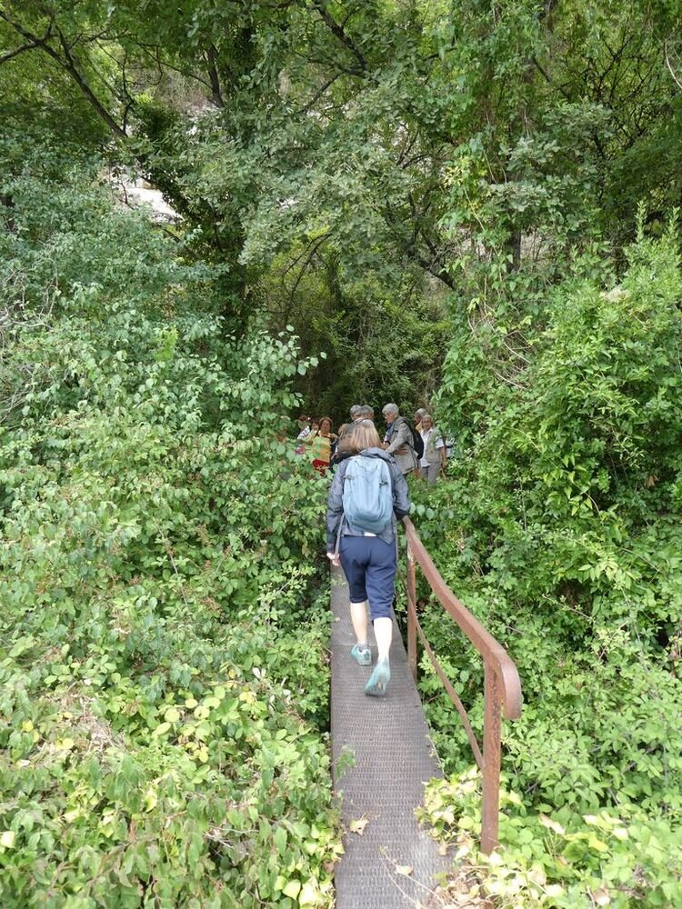 Puis nous rebroussons chemin en contemplant les imposants murs de soutènement rendus nécessaires par la construction à la fin du XIXème siècle de la voie ferrée, avant de retrouver nos véhicules sous le regard métallique d’un imposant cheval cabré.