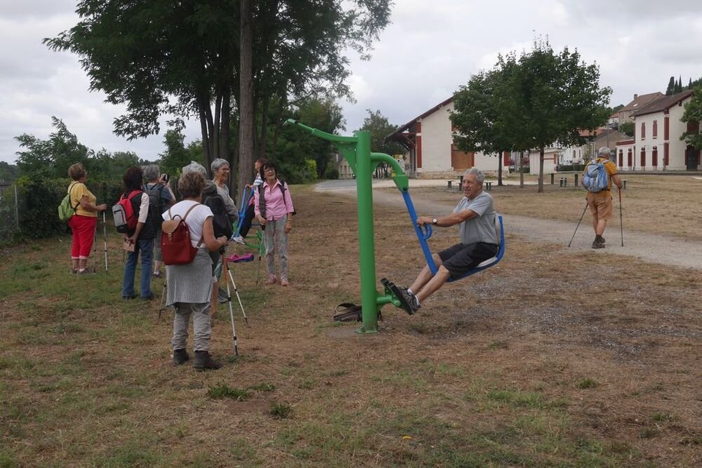 Affluence moyenne, en cette matinée nuageuse, pour cette randonnée ayant pour point de départ l’aire de stationnement en face du « au Petit Monte Carlo » (tout un programme), le long du « Baladoir » aménagé en 2013 sur le tracé de l’ancienne voie ferrée reliant Cahors à Libos (1869 - 1971) amenant le charbon de Decazeville aux hauts fourneaux de l’usine métallurgique de Fumel.