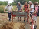 En arrivant, la température est encore raisonnable, nous pouvons profiter du jardin du « Tympan » où nous attend un sympathique « repas-partagé » mis en place par les bénévoles de Goujoun’art et précédé d’un apéritif offert par l’association.