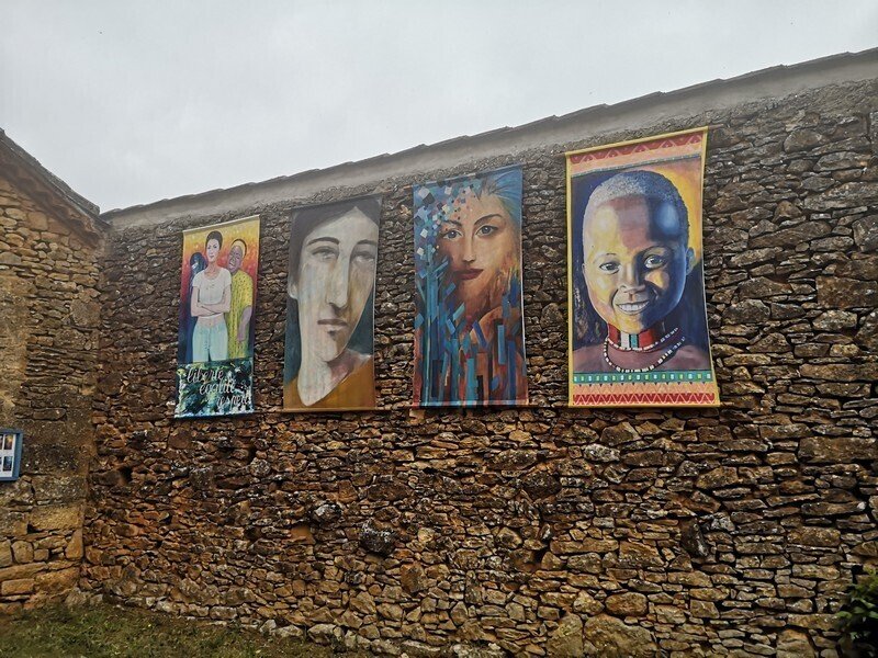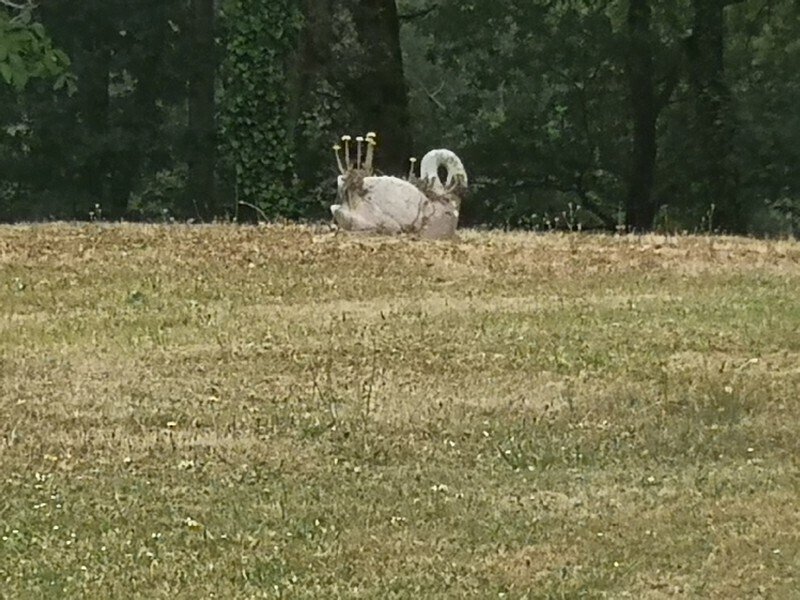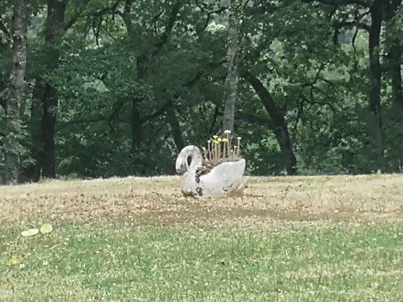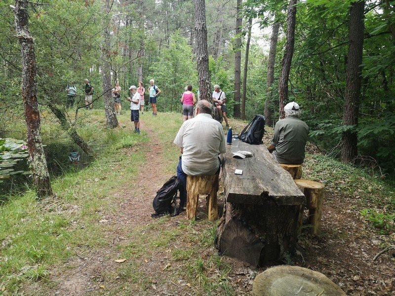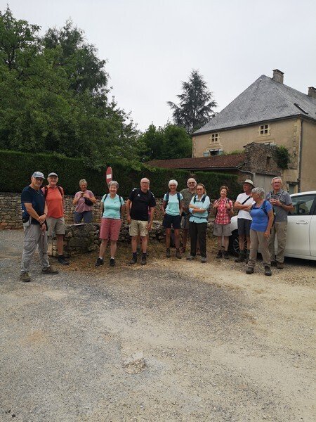 Nous ne sommes que 13 courageux sur le parking de Goujounac à avoir bravé la chaleur, tous de randoval pour une rando organisée à l’occasion de la « Saint Jean de Goujoun’art », la mini -biennale. Un participant de l’atelier aquarelle nous a rejoint in extrémis en début de parcours. Les marcheurs habituels ont eu sûrement peur de la canicule.