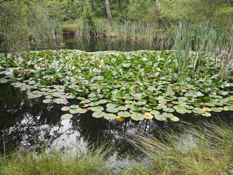Après cinquante mètres sur notre droite, un petit sentier nous conduit à la mare aux nénuphars en pleine heure de gloire et nous invite à nous poser quelques minutes.