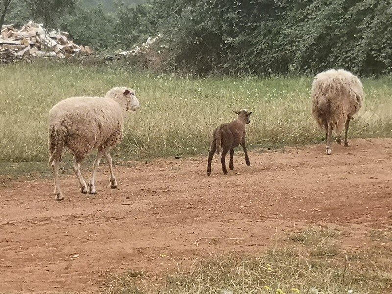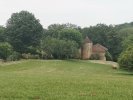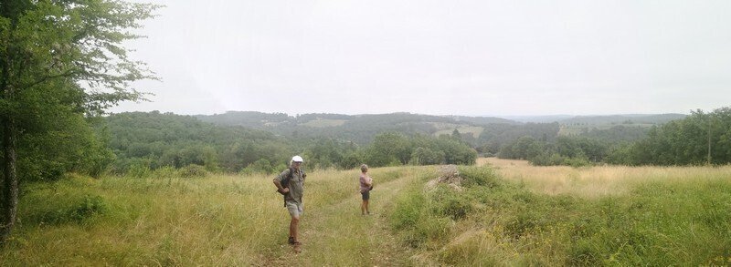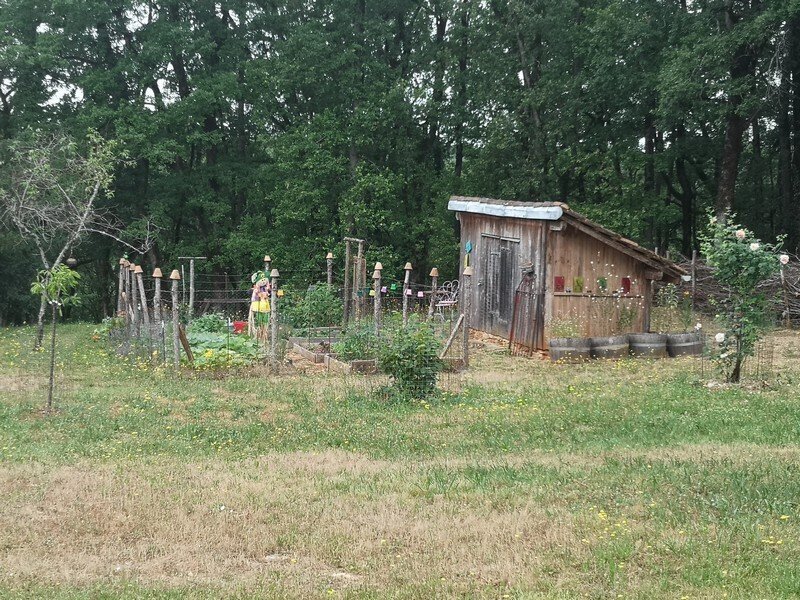 Au premier plan sur la droite une belle « terra rossa » contraste avec la terre sableuse des sous-bois. Le champ cultivé de tournesol nous rappelle qu’il existe encore des agriculteurs à Goujounac. Des trente familles d’agriculteurs de l’après-guerre, il n’en reste plus que deux aujourd’hui….