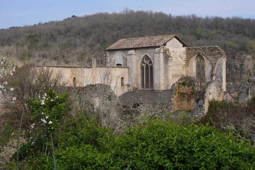 Nous descendons vers Pont-Carral et tout en longeant le Céou, arrivons à l’Abbaye Sainte-Marie-de-Gourdon aussi appelée Abbaye-Nouvelle. C’est une ancienne abbaye cistercienne, fondée au XIIIe siècle par les moines de l’abbaye d’Aubazine (Corrèze). Les moines quittèrent le lieu au XVIIe siècle et l‘abbaye subit, à la Révolution, le triste destin des biens confisqués. Son démantèlement, pierre à pierre, au profit de diverses habitations, a, par bonheur, laissé déloquents vestiges.
