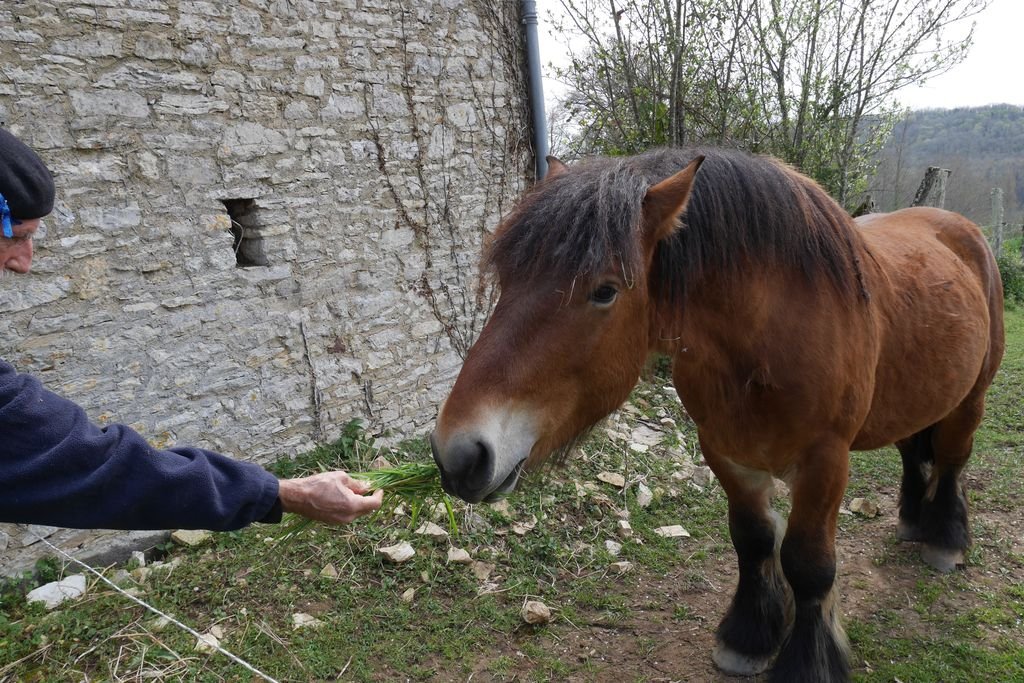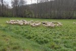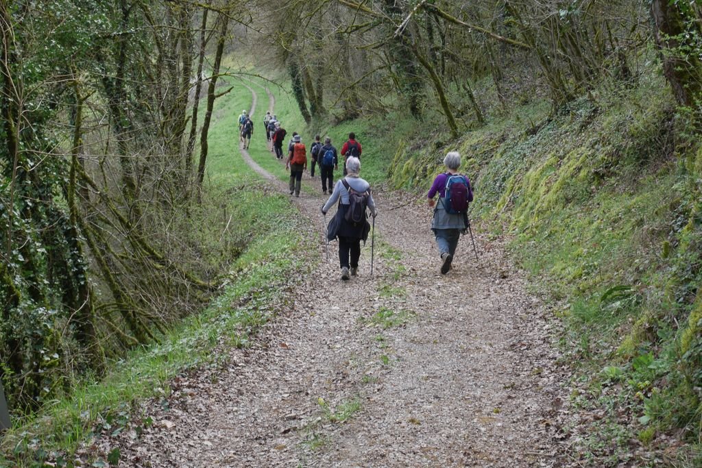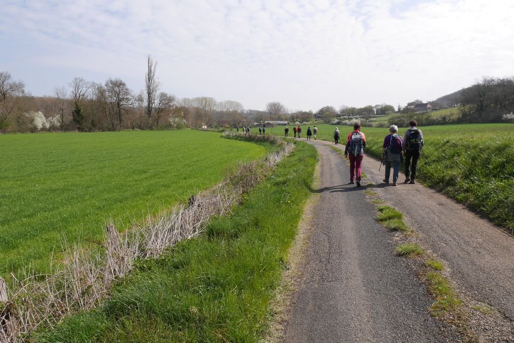 Il est temps de quitter ce lieu chargé d’histoire et de mettre un terme à notre pause-repas, nous continuons le chemin de Saint-Jacques tout en longeant les prairies d’un vert tendre si caractéristique en cette saison printanière.
