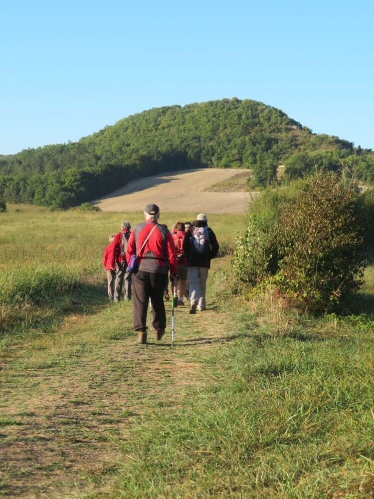 Fréquentation moyenne pour cette dernière randonnée de l’été, nous sommes 13 devant l’église du Boulvé pour une randonnée de 9 kms à la découverte des crêtes sauvages de la commune en empruntant certains chemins récemment rebalisés par l’étoile Sportive et Culturelle du Boulvé, dont le petit guide accessible à tous, au seuil de la salle des fêtes, met en valeur 7 circuits de distances et de difficultés différentes.