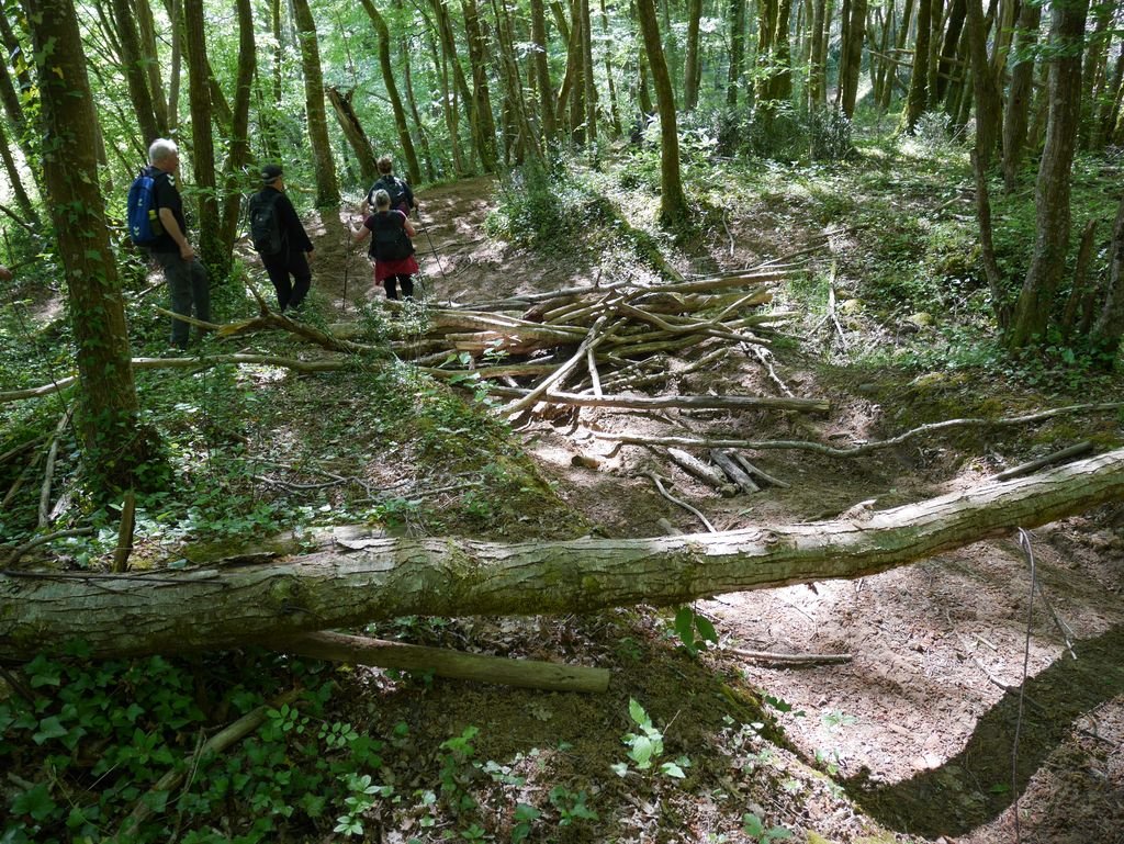 Après avoir franchi la D44, nous nous dirigeons vers la ferme du Mayne avant d’atteindre le hameau de La Grézette. À partir de là, cap plein sud sur des chemins en forêt, nous faisant passer près des hameaux des Oules et de Selves. Nous mesurons encore une fois les dégâts causés par la tempête Niels par la quantité d’arbres couchés en travers des sentiers.