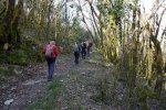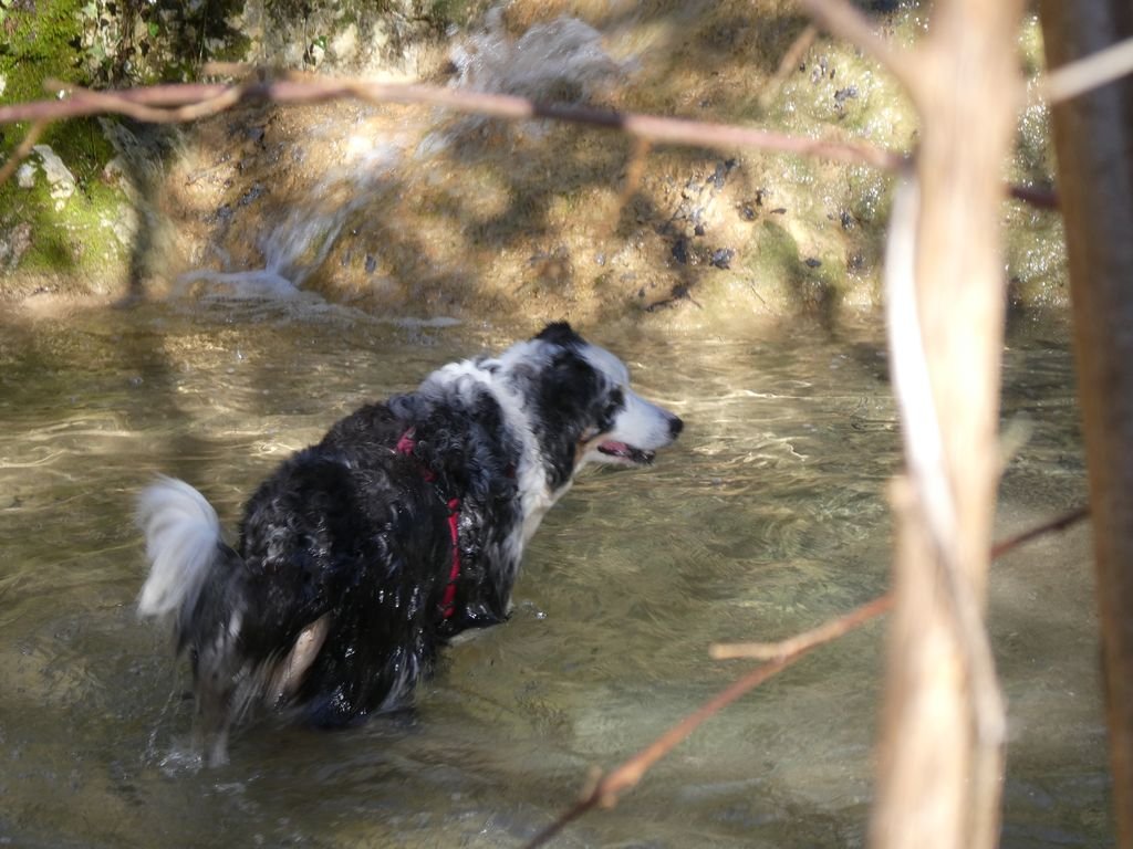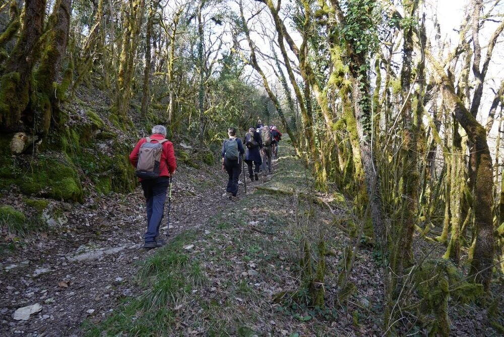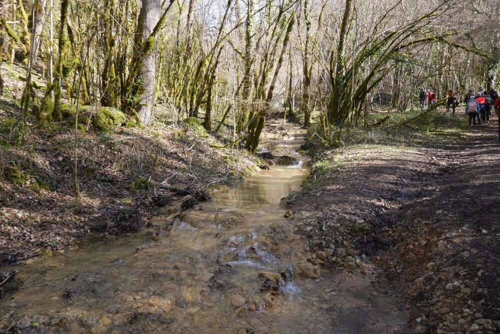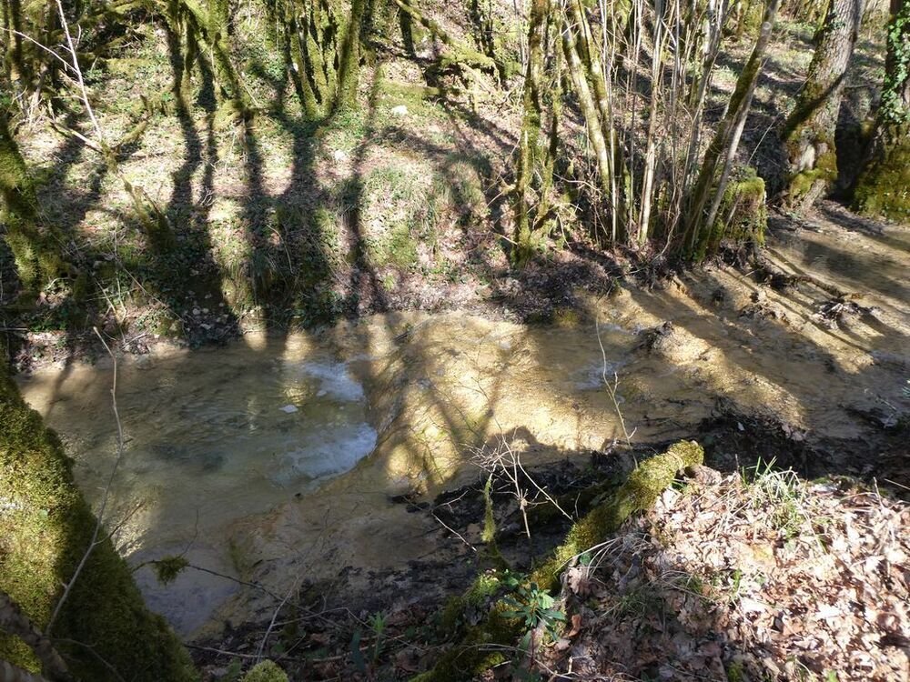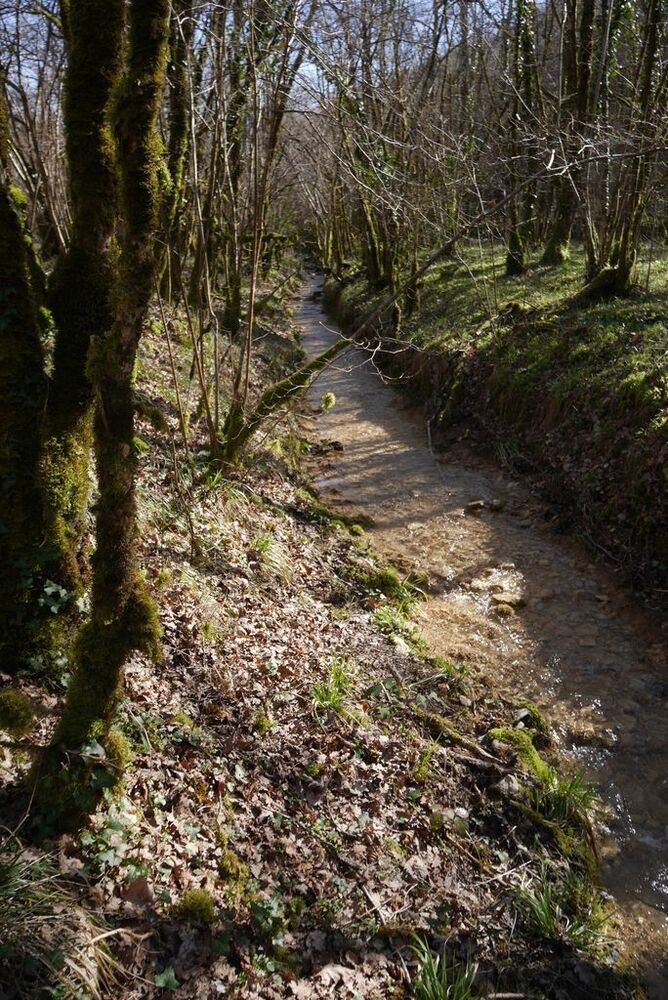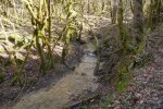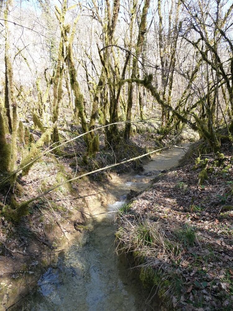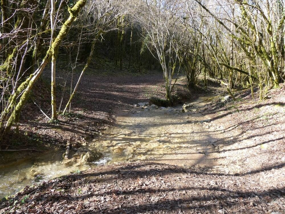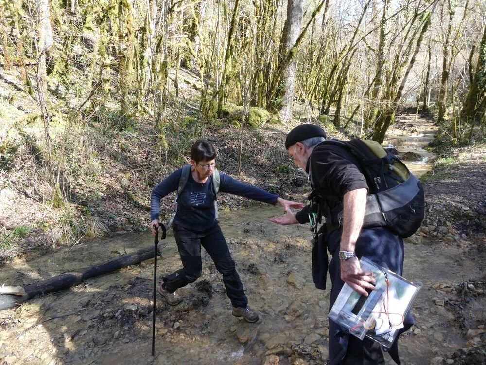 Nous partons de Rivière-Haute et nous nous dirigeons plein sud sur un chemin forestier. Mais gonflé par les pluies de ces derniers jours, il nous faut par trois fois passer le gué du ruisseau des Payrols qui se fraye un passage d’un côté à l’autre du chemin.