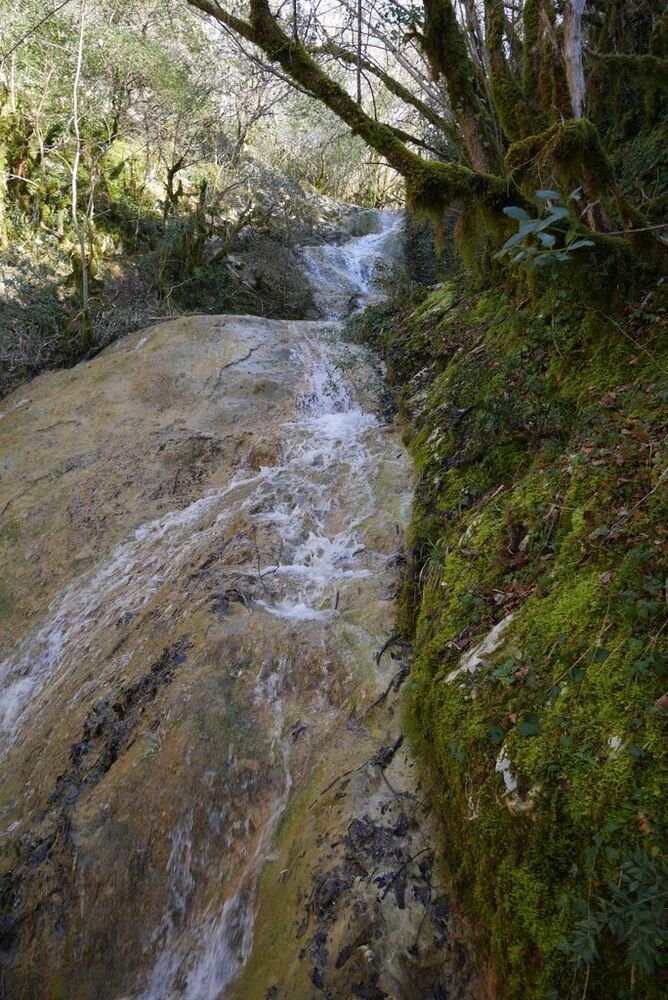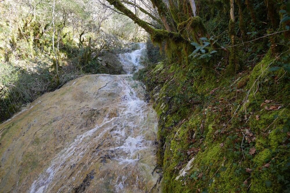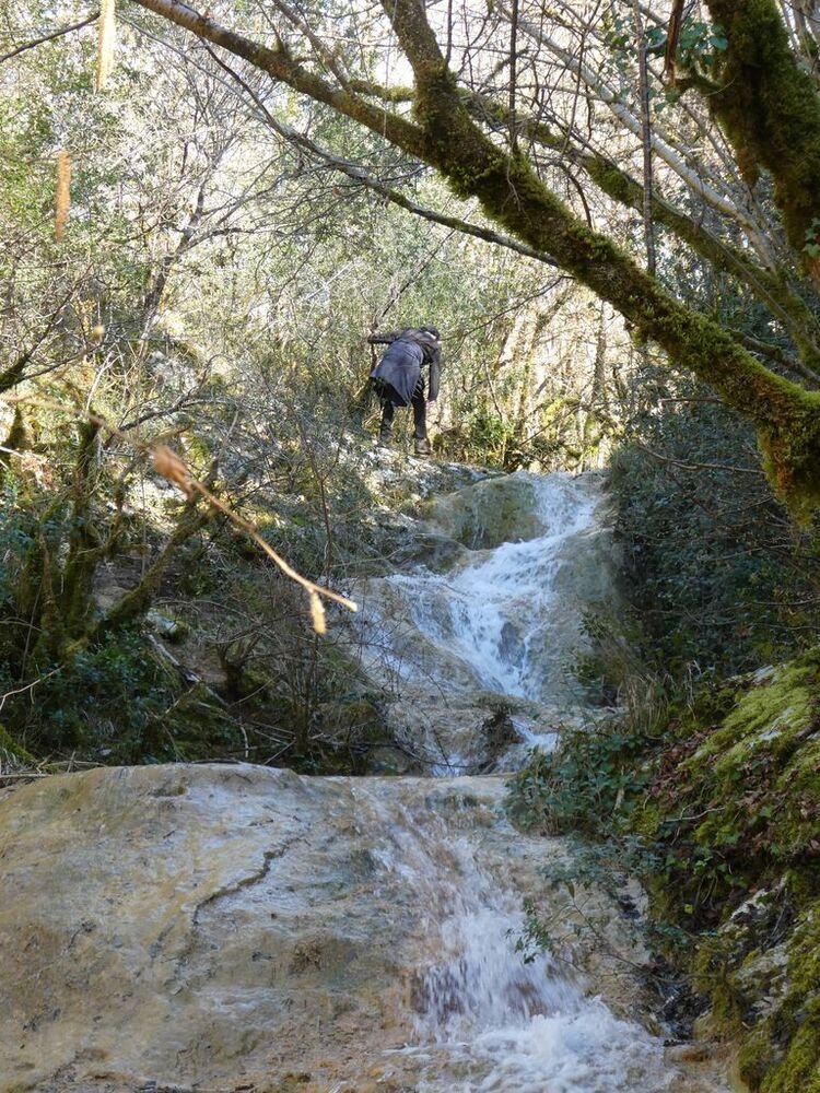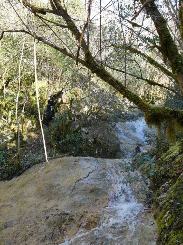 Nous arrivons très rapidement à ce qui constitue le clou de notre randonnée : la cascade des Payrols. Ce site naturel est particulièrement mis en valeur chaque hiver lors de pluviométrie importante. Autant dire que cette année le débit de la cascade fonctionne à plein régime.