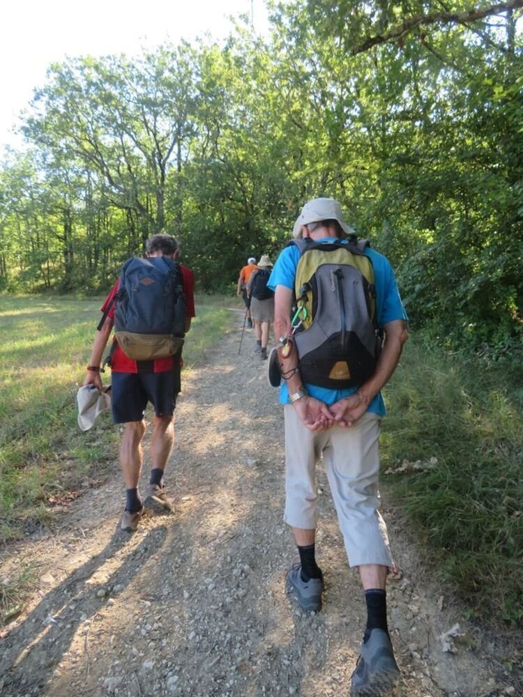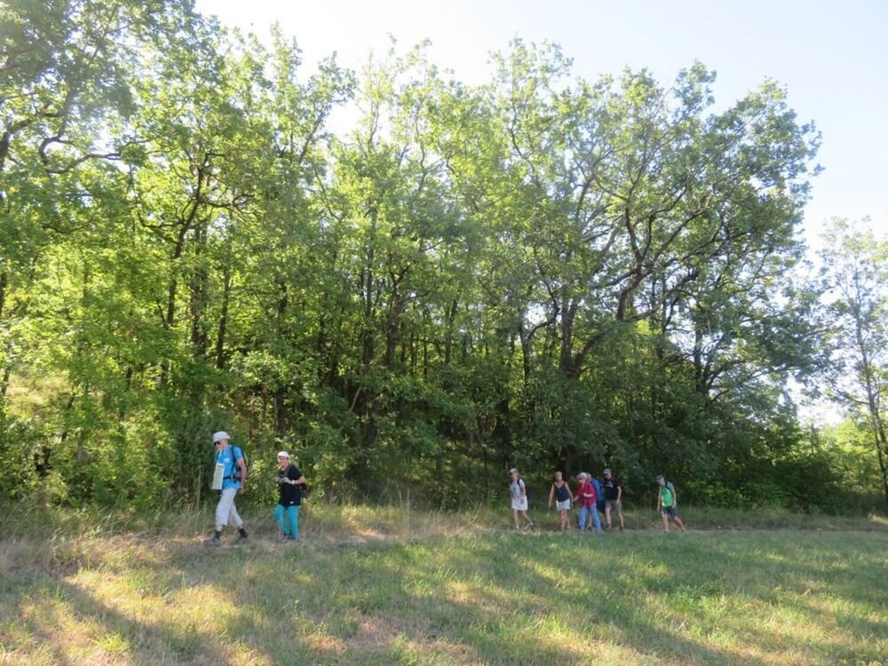 De là nous empruntons le GR 652 qui après une légère montée, nous ramène à la bastide sous un soleil ardent, lorsque s’égrènent au clocher si caractéristique, les 12 coups de midi.