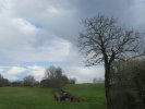 Ciel bleu, nuages blancs puis passages de grisaille avec légères averses : une balade de printemps, entre soleil et giboulées, agrémentée par toutes les couleurs des fleurs nichées le long des sentiers : violettes, pervenches, pissenlit, pâquerettes, véroniques, cytise, et mêmes quelques premières orchidées, en l’occurrence l’orchis mâle ! Pour parfaire le tout, chevaux paisibles et agneaux bondissants !