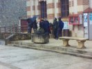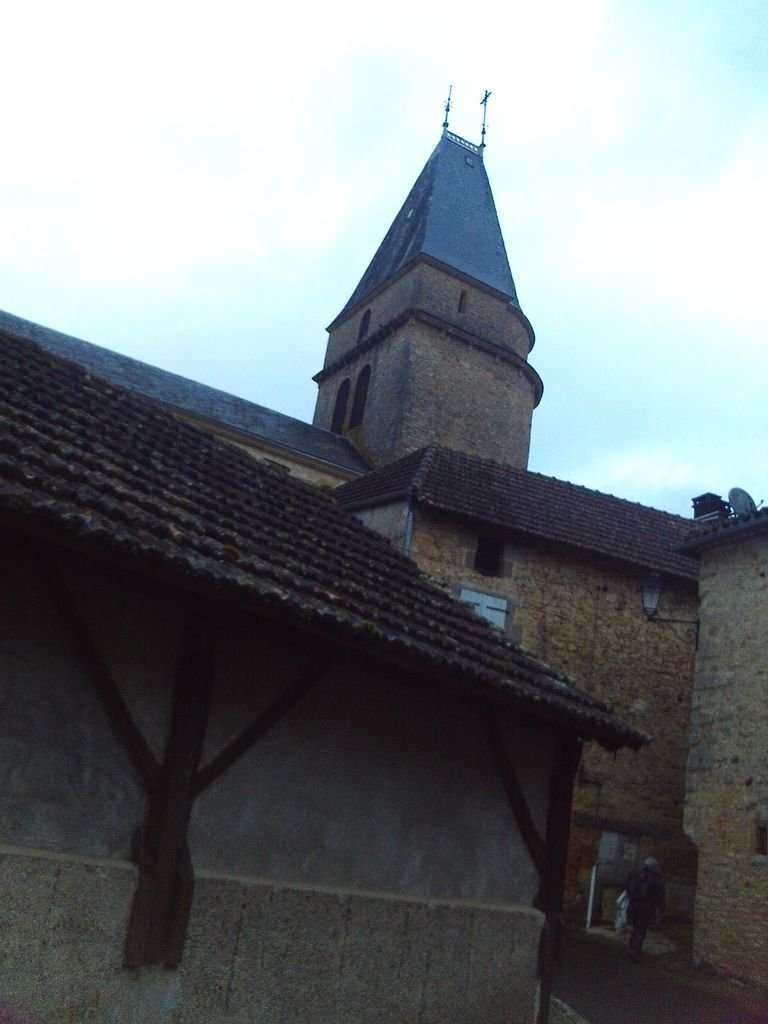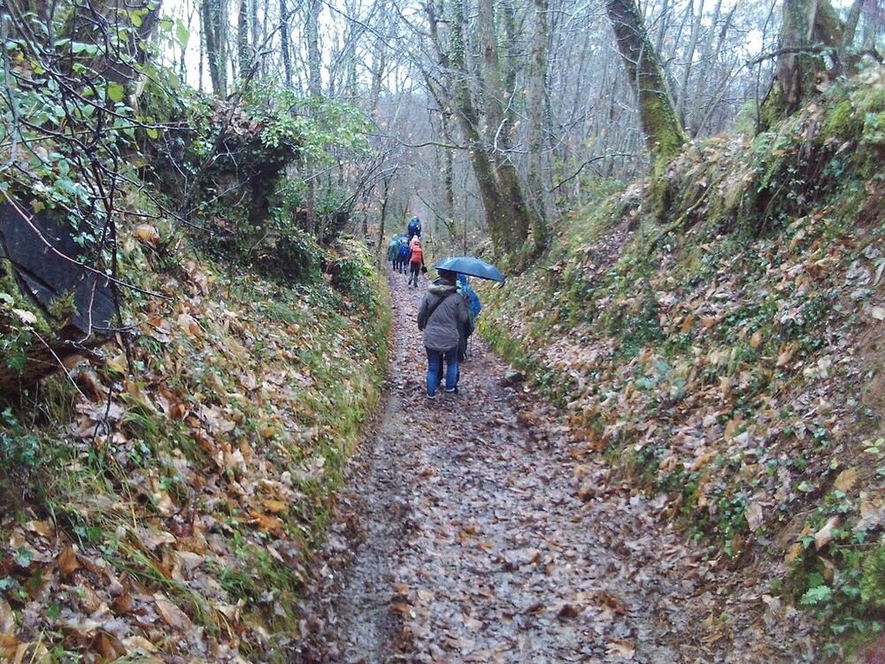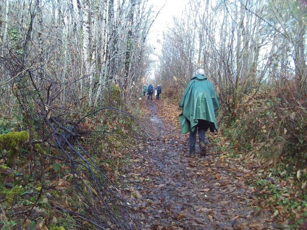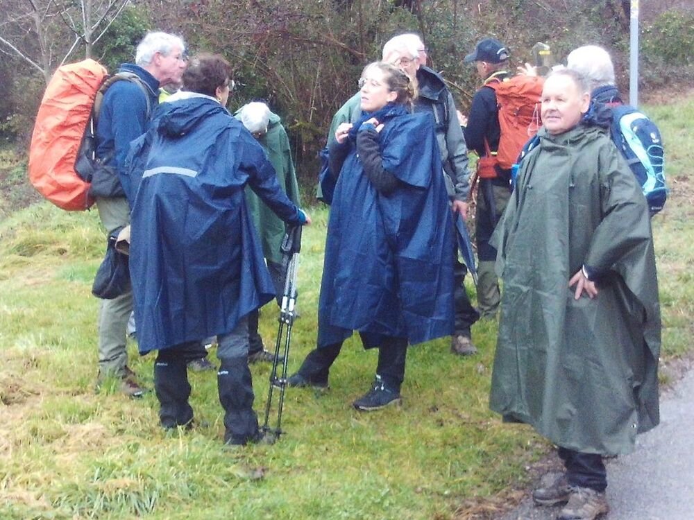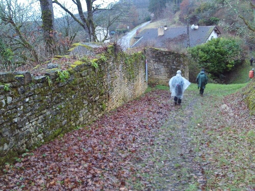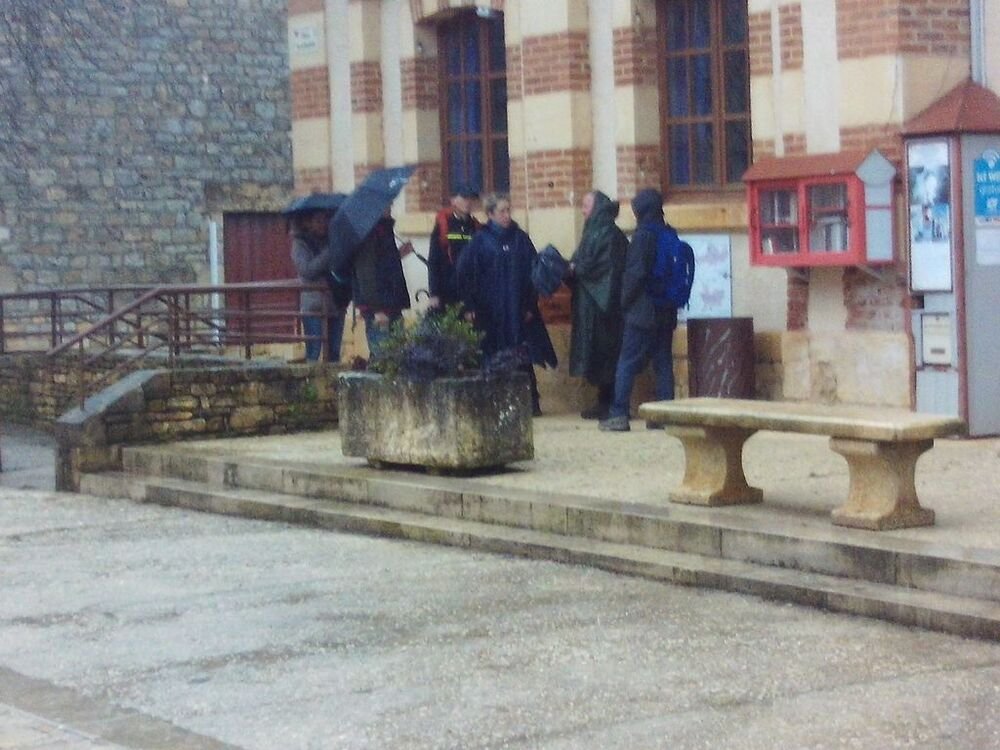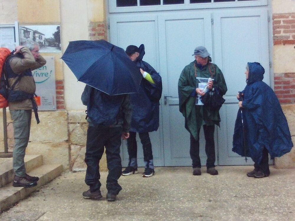 A l’abri sous les avancées de toit de la Mairie, nous avons attendu la fin de l’averse pour reprendre notre marche vers notre lieu de restauration, situé au douzième kilomètre.