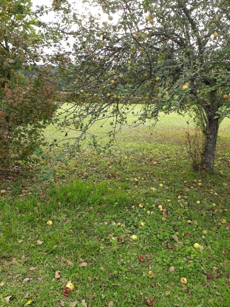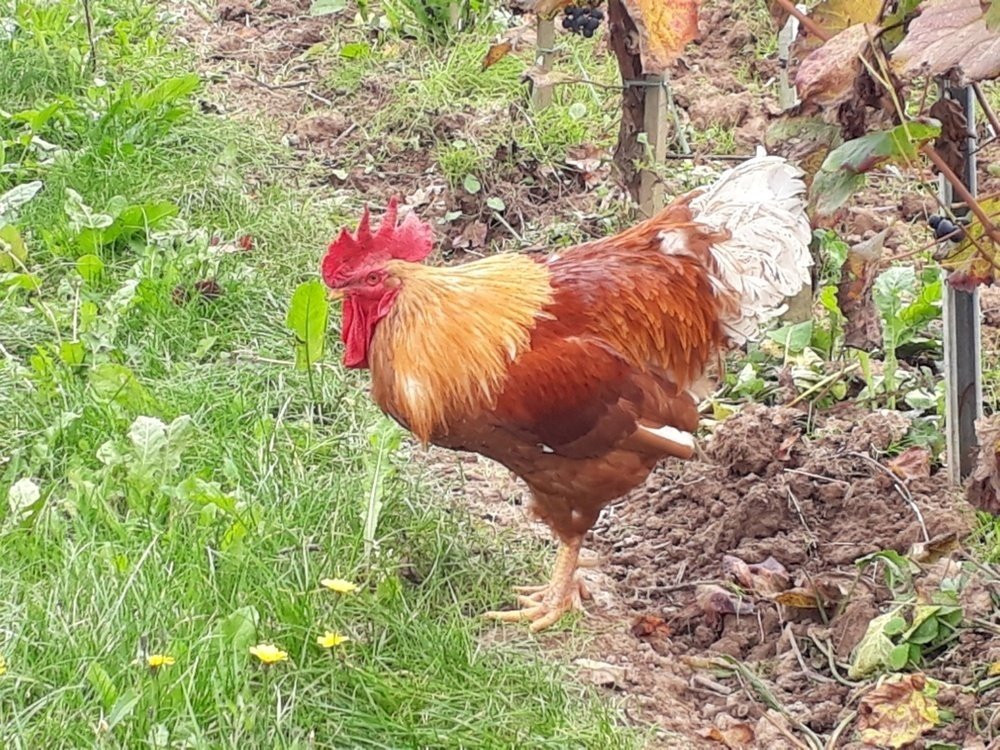 Contourner les vignes colorées des lieux dits Brouel et Balzac nous a offert le chant et le caquètement d’un superbe coq picorant dans les travées et l’attroupement de moutons profitant des dernières belles journées. Fouler les noix noircies tombées au sol ou les pommes des pommiers croulant sous leur fruits, voilà un autre signe annonciateur de la dure saison qui arrive !!