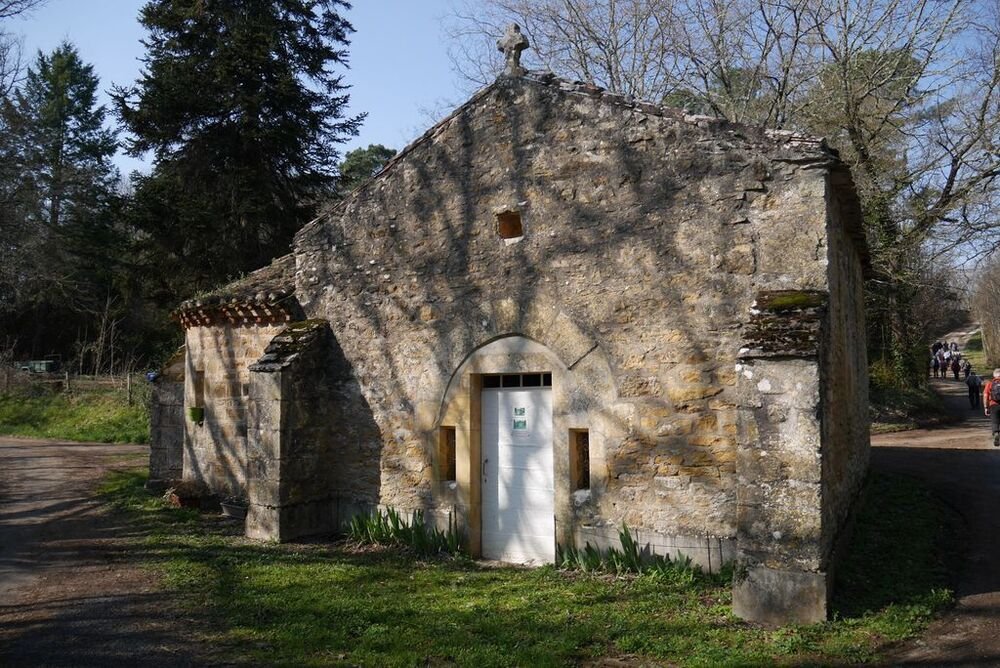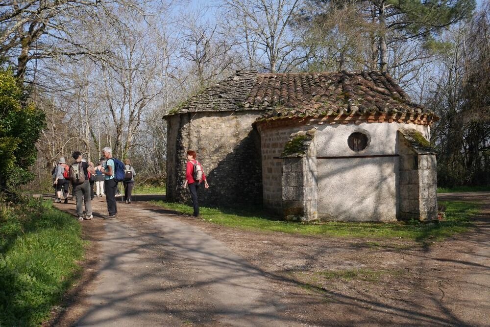 C’est donc par la montée du Roulié vers l’église que nous commençons. Nous continuons par le lotissement de l’Ameillée avant de plonger dans la vallée du ruisseau des Clédelles à Font Gourdou. De là nous reprenons la montée vers la chapelle de Calvayrac. Cette petite chapelle Notre-Dame-du-Rosier, datable pour l’essentiel du 15e siècle, fut à l’origine la chapelle funéraire des seigneurs du château de Calvayrac.