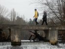 Nous poursuivons la balade le long de la rivière, toujours sous la pluie, et nous trouvons refuge sous l’auvent de la salle des fêtes de Lagardelle pour un thé réconfortant. Chemin faisant nous voyons à l’œuvre les hommes occupés à la taille de la vigne. C’est la saison !