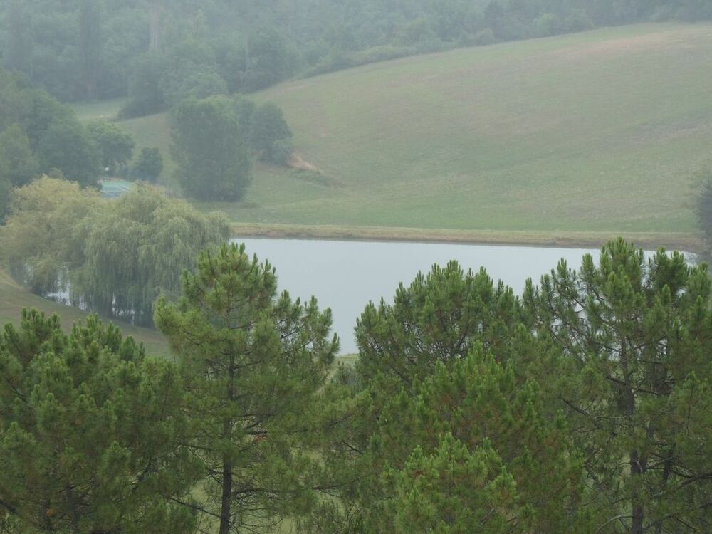 Nous montons par une petite route asphaltée vers le hameau de Pons, longeant des talus parsemés de bruyères en fleurs, dépassant le lac collinaire de Marliac, puis nous poursuivons, nord-est, par un chemin de crête vers le lieu-dit « Patraque » dominant la combe Duberte au nord-ouest et la vallée du Baudenque au sud-est.