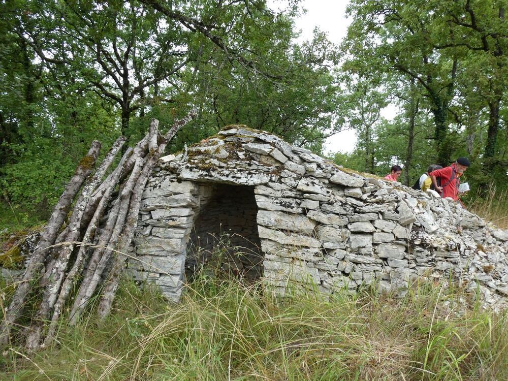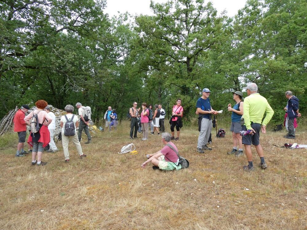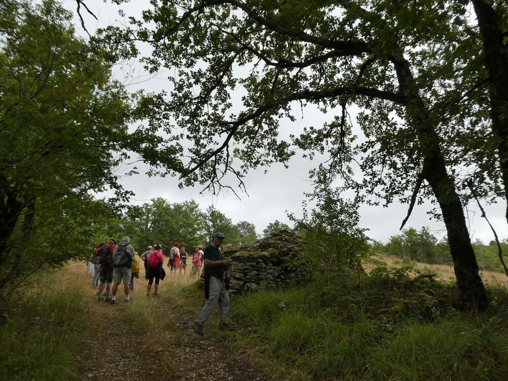 Nous effectuons notre pause- café avant le hameau au pied d’une gariotte, atteignant le point culminant de notre circuit (249 m), le long d’une plantation de chênes verts truffiers, dévoilant au nord-ouest en contrebas une vue sur le château de Cousserans et au sud le village de Rouffiac.