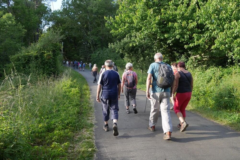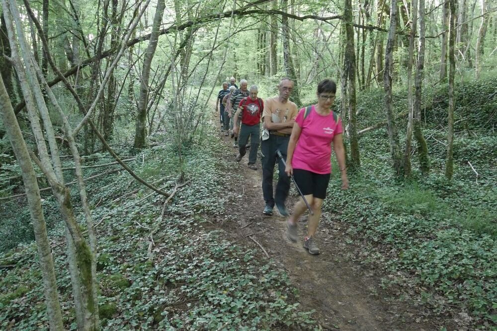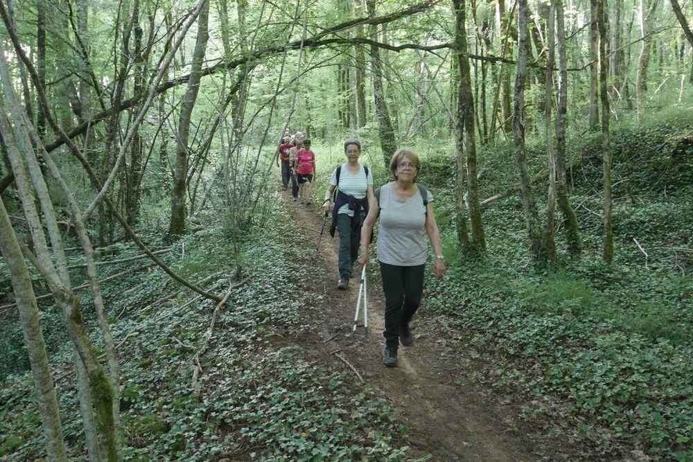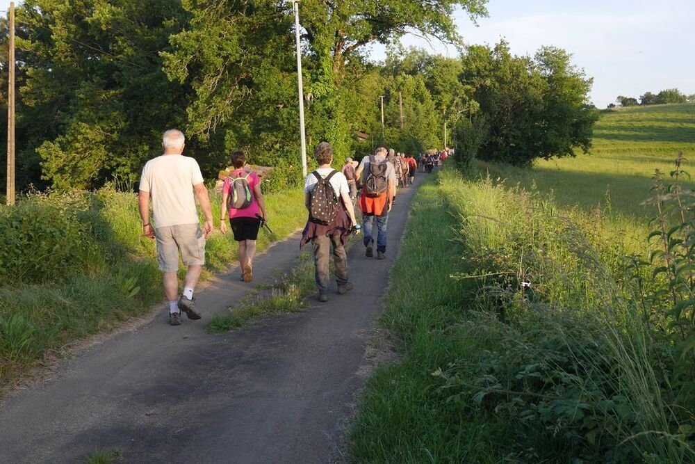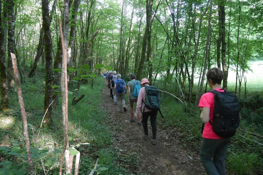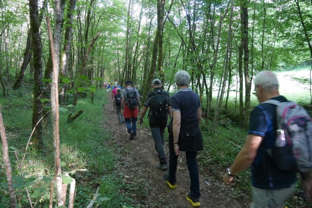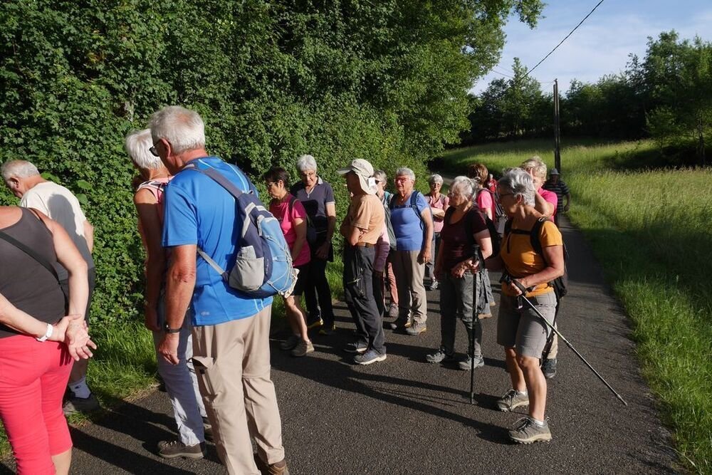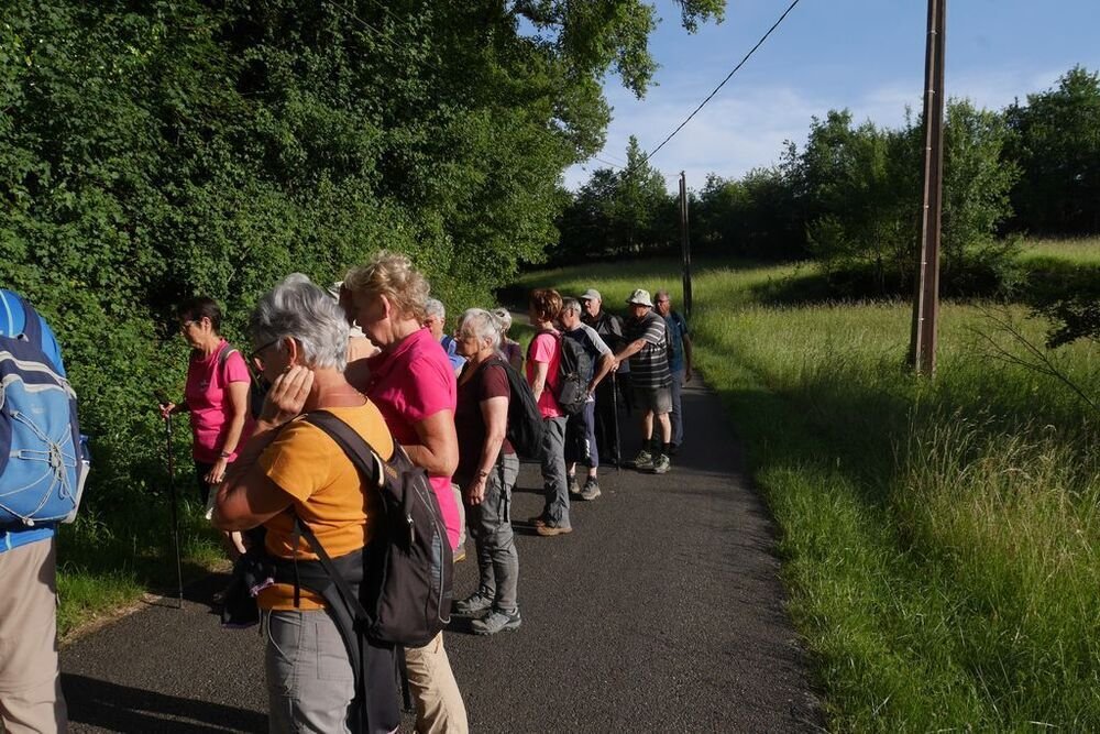 Sous la conduite de Philippe, notre groupe démarre du parking de l’église de Martignac en direction des Oules. Nous obliquons ensuite plein nord jusqu’à atteindre le GR®652, un des chemins de Saint-Jacques de Compostelle… Nous l’empruntons en direction du sud-ouest vers Rigal. Puis nous laissons le hameau de Laborde sur notre droite et nous quittons le GR®652 pour redescendre sur Martignac en empruntant un chemin dissimulé sous de nombreuses herbes folles… Attention aux tiques…