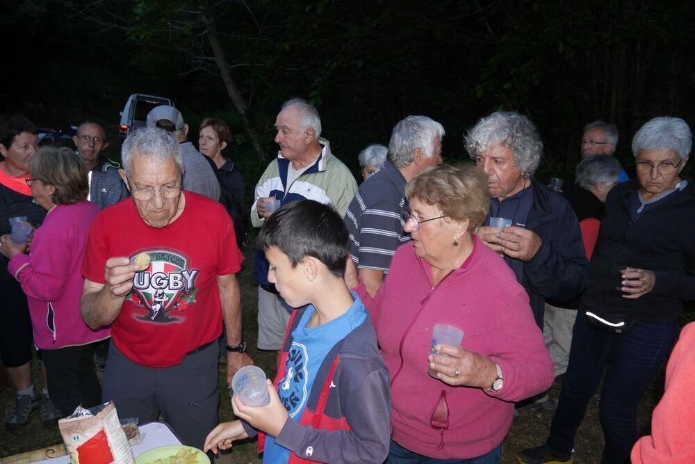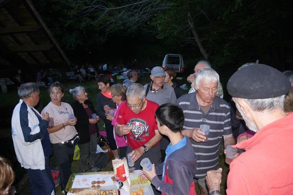 Nous gagnons le lavoir, où nos cuisiniers Huguette, Marilène, Georges et François nous ont amoureusement concocté de délicieuses grillades persillées. De plus, de nombreux randovaliens les ont agrémentées en nous offrant leurs préparations culinaires qui ont ravi les palais des gourmands que nous sommes. Quant aux desserts il y a eu moult choix !