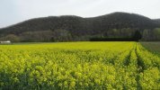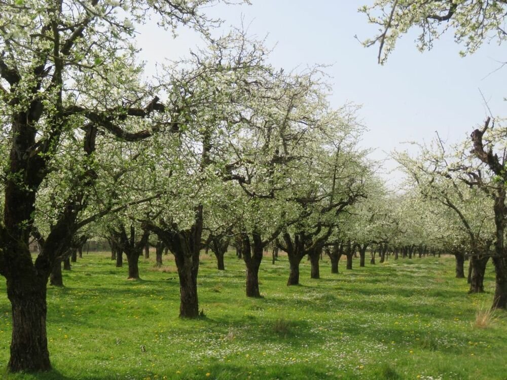 Le long du chemin, le colza nous en met plein la vue, et le tracteur qui répand quelques produits phytosanitaires nous en met plein les narines . . . Mais Gégé avait tout prévu, il a ressorti un bon vieux masque covid ! Image bucolique : quelques brebis et leurs agneaux paissent tranquillement à l’ombre des . . . pruniers en fleurs.