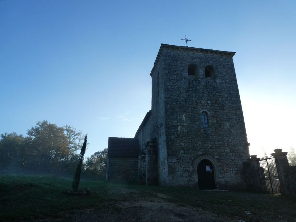 La brume qui serpente au-dessus du Lot s’est évaporée lorsque nous atteignons Pestillac. Une belle clarté illumine l’église Notre-Dame, datée du XIIe siècle. Sa nef, dont la toiture a été victime d’un incendie au siècle dernier, comporte au nord et au sud deux chapelles qui semblent avoir été ajoutées au XIIIe ou au XIVe siècle. Elle est surhaussée à l’époque moderne, et un clocher-tour est installé. Le chevet est quant à lui couronné par une corniche à métopes perforées et modillons dont deux sont ornés de têtes humaines. L’église romane, à nef unique, est construite en pierre de taille. Couverte aujourd’hui d’une voûte en berceau, elle était peut-être à l’origine charpentée. Le chevet, lui, est couvert en lauzes de calcaire. L’implantation de cette église à proximité immédiate du castrum de Pestillac, témoigne de la vie de la féodalité rurale. Elle est inscrite au titre des Monuments Historiques depuis 2020. Cependant le temps altère ce monument qui présente un intérêt majeur méritant une sauvegarde de toute urgence.