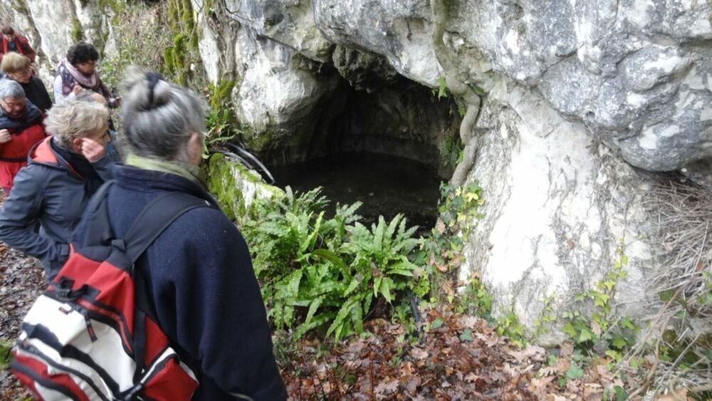 Arrivant au hameau de Prézan, nous quittons le GRP et remontons, plein nord, s’arrêtant à la superbe fontaine de Prézan aux eaux limpides, suintant de la roche calcaire, accompagnés, au loin par un troupeau de blondes d’aquitaine, avant d’atteindre le hameau du Causse, point culminant de notre périple d’où, par temps propice, se détache au loin la chaine Pyrénéenne (ce n’est pas le cas aujourd’hui, le brouillard s’intensifiant).