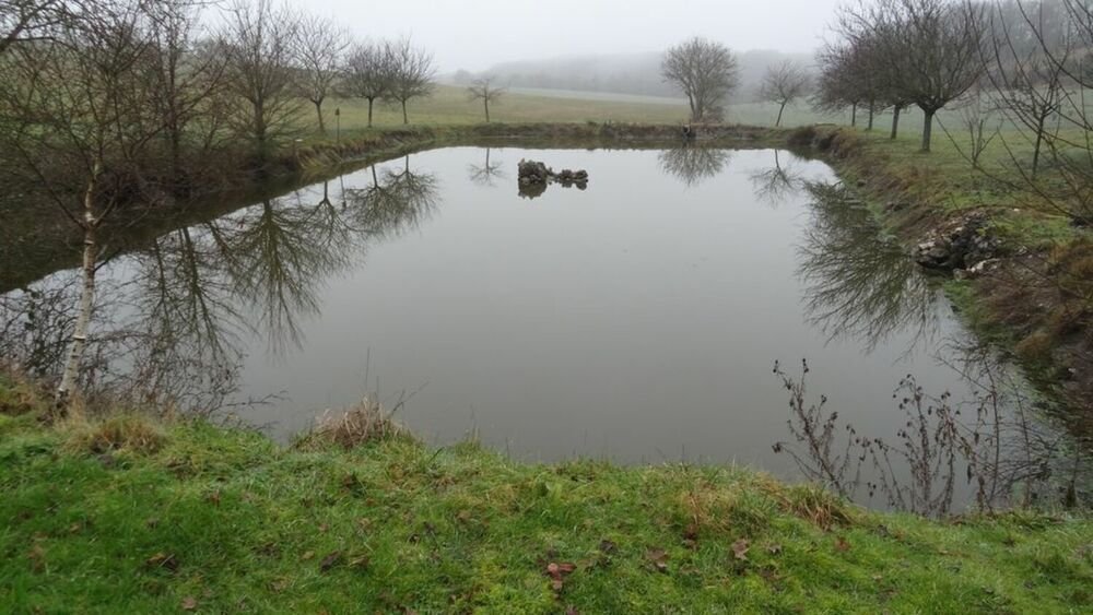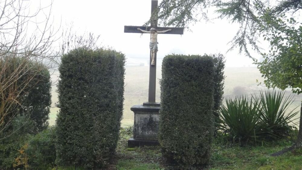 Après un détour au puits de Gouts qui alimente une réserve d’eau, nous traversons la D2 et devinons dans le brouillard sur un tertre à proximité d’une antenne relais, le Sacré Cœur de Gouts (vierge sur un piédestal), avant d’entreprendre la descente, cap au sud, traversant le hameau de la « Bouriette » et sa fontaine puis le hameau du « Barou » longeant des mares où prolifèrent les lentilles d’eau.