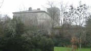 Enfin se dévoile la motte castrale de Montaigu nappée de brumes que nous atteignons par le chemin du Colombier qui monte vers le château dont les ruines (il ne reste que les remparts et une partie du donjon) sont occupées par une belle demeure de construction récente (année 1972) respectant cependant la majesté du lieu.