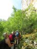 Munis de sécateurs, nous avançons parmi les herbes hautes et les broussailles, découvrant, qui les hautes falaises colonisées par les rapaces qui nous surplombent, qui le Lot qui coule paresseusement à nos pieds.