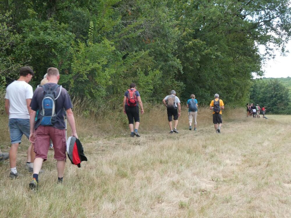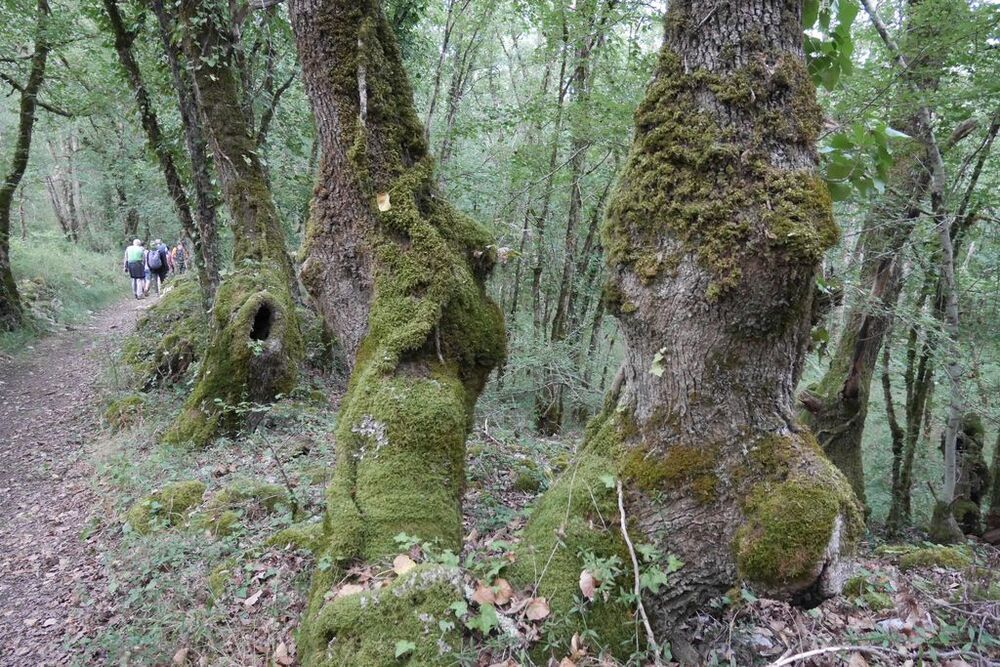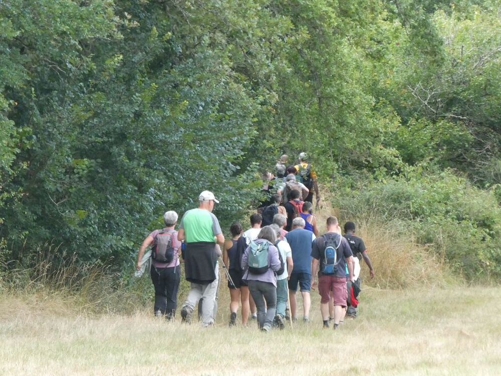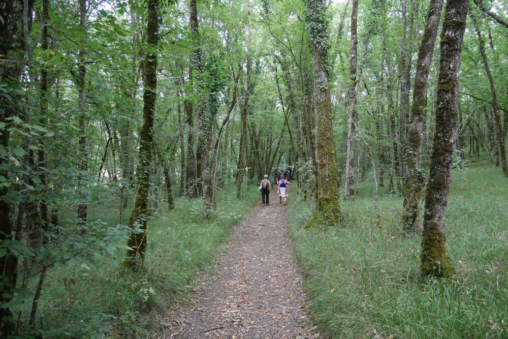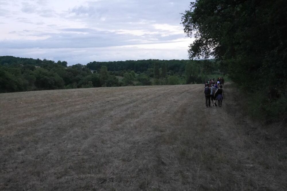 Mais avant ce moment singulier où le ciel a pris les couleurs d’un feu gigantesque, nous avons cheminé sur les sentiers de la forêt du Verdus. Elle offre un véritable labyrinthe de chemins qui se croisent et s’entrecroisent en un réseau complexe qui prête à l’égarement ! Sous le couvert des frondaisons, nos valeureux marcheurs ont pris tous les tours et détours qu’il fallait pour échapper aux pièges de la forêt et s’en revenir au village de Thézac : c’est là que nous avons pique-niqué, éclairés par la lueur bienvenue d’un lampadaire.