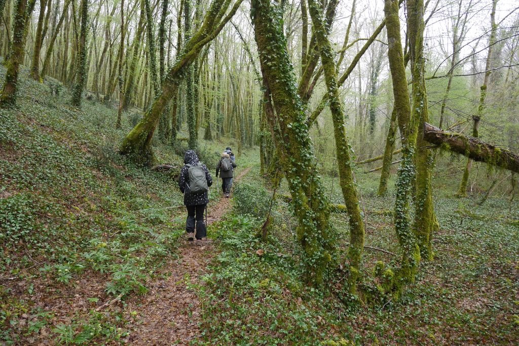 Malgré la bruine persistante et la fraicheur ambiante trois courageuses et un courageux ont bravé les cieux peu cléments pour arpenter la délicieuse vallée du Sendroux à proximité de Sauveterre La Lémance.