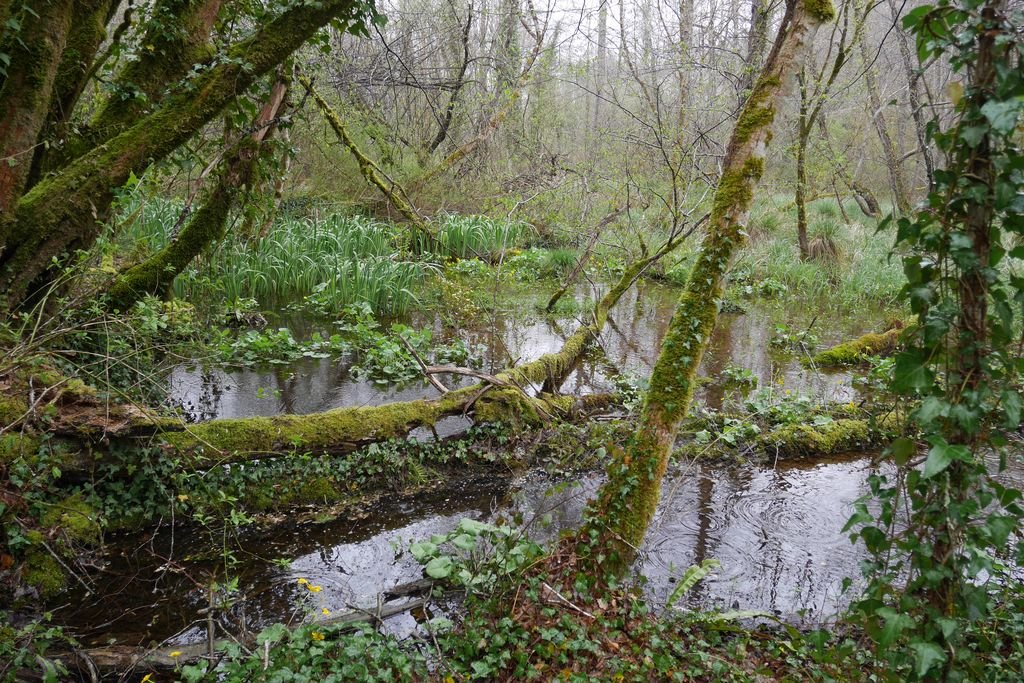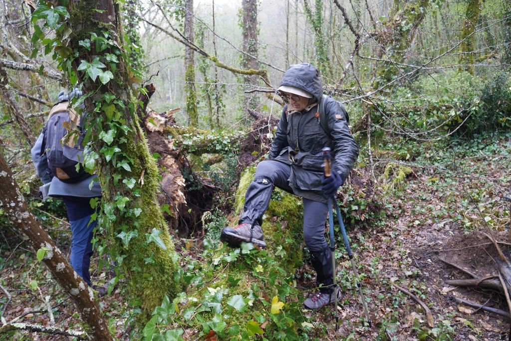 S’agissant d’un aller-retour à l’approche du moulin de Redon nous rebroussons chemin, toujours accompagnés par une fine pluie avant de récupérer notre véhicule après une déambulation forestière de 5 kms sans dénivelé si ce n’est le franchissement d’arbres abattus par les récents coups de vent.