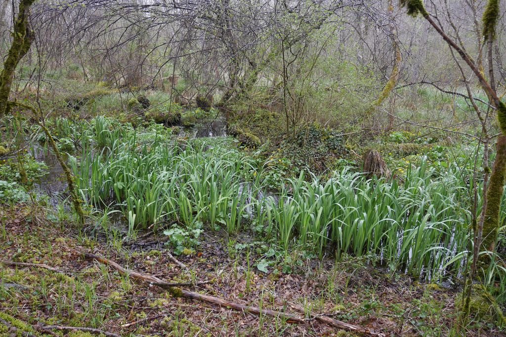 Direction ouest vers le Moulin du Périe et les vestiges d’un ancien camping, nous longeons une zone humide où s’épanouissent les fleurs sauvages des marais notamment la populage des marais ou souci d’eau avant l’éclosion future des iris d’eau.