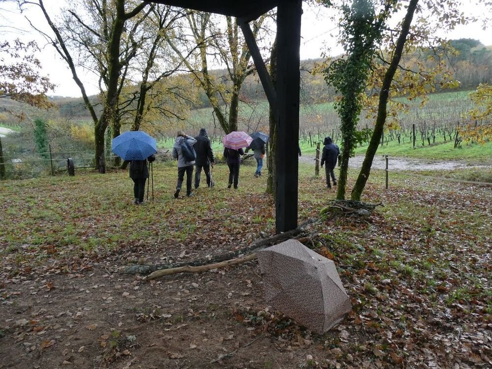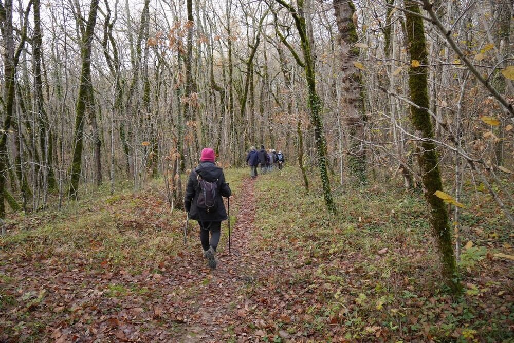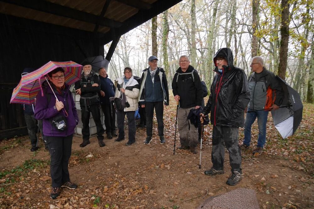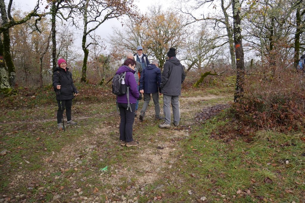 Pour cette sortie à Lacapelle-Cabanac, la météo est nuageuse avec pluie potentielle, température 8°C, nous formons un groupe de 12 marcheurs.