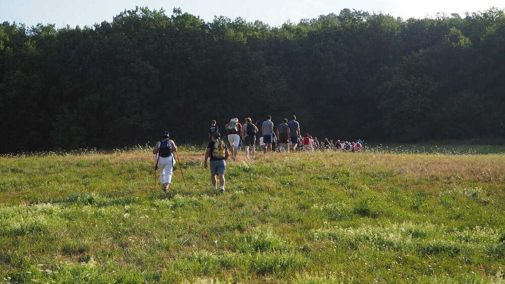 Presque cinquante-cinq randonneurs étaient présents pour cette sortie. Nous avons évolués sur un circuit adapté aux conditions climatiques caniculaires du jour. Le moins possible de côte ( un exploit pour ce secteur...) et une majorité d’ombrage étaient au programme. Bravo à Georges, notre guide du jour, pour le choix des sentiers.