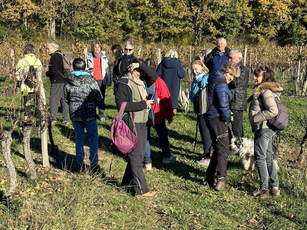 Nous sommes 17 au départ de l’écluse de Floiras, pour une randonnée de 6 km au cœur du cingle de Prayssac, où les vignes ont pris les teintes rousses de l’automne.