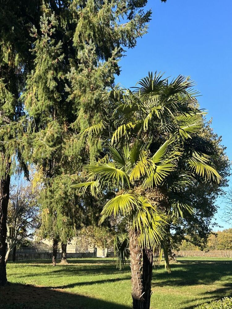 Nous suivons le Lot pendant quelques centaines de mètres, à l’ombre de la cévenne où culmine le village de Bélaye, dont on distingue les ruines du château du coseigneur, daté du XIIIème siècle. Quelques ruches installées sur les berges de la rivière attirent l’œil de Béatrice l’apicultrice ! Nous bifurquons bientôt vers le soleil et traversons de coquets hameaux environnés d’une végétation inattendue : en effet des palmiers en nombre se dressent en bordure de chemin et dans les jardins le long desquels nous déambulons. Sous le ciel d’un bleu intense, nous avons l’impression d’être transportés « ailleurs », dans une improbable Californie . . .