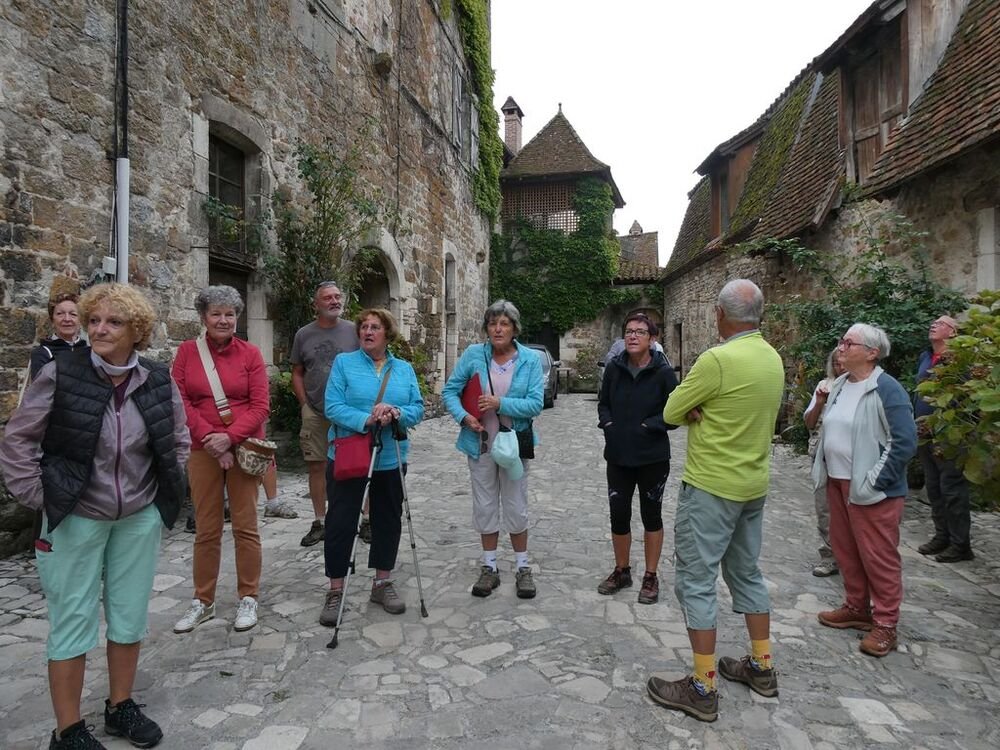 Direction CARENNAC. Nous suivons Andrée qui nous embarque dans une passionnante visite de ce magnifique bourg.