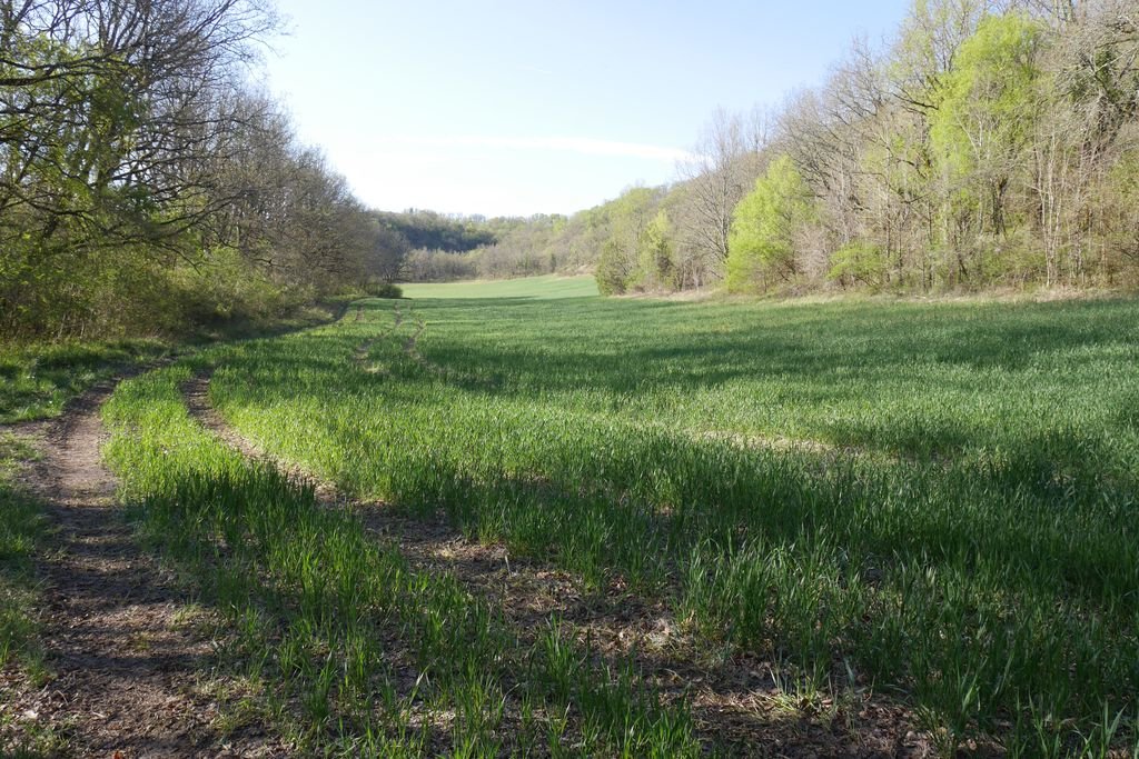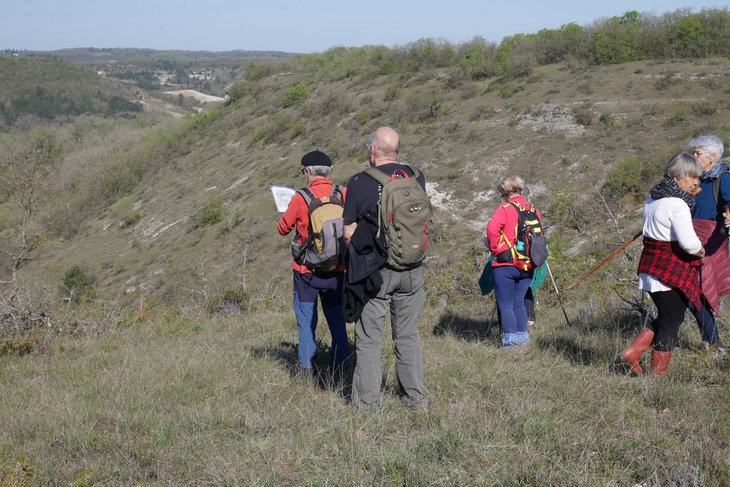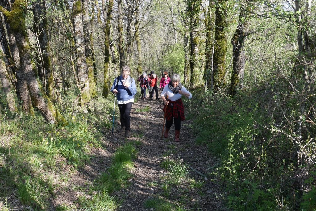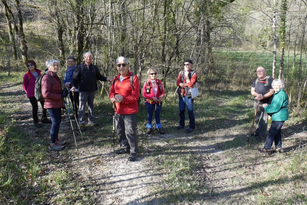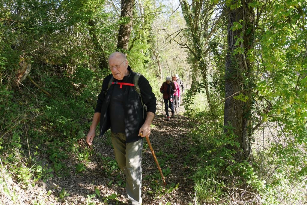 Pour le reste, des beaux sentiers tout au long de notre cheminement avec un dénivelé de 129m. Le retour des beaux jours a déjà effacé les traces d’un hiver humide et le craquèlement de la terre augure d’une possible sécheresse estivale. Donc pas de chaussures à nettoyer en rentrant. Un avantage certain pour l’un d’entre nous qui avait oublié ses chaussures de rando à la maison et qui a fait l’intégralité du parcours avec de chics mocassins. Pas de problème pour lui, nous n’étions pas en haute montagne…