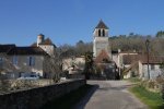 Départ par la montée « La Borie » qui offre une belle perspective sur le village de Lherm : superbes bâtisses en pierre regroupées autour de l’église paroissiale. Dès le moyen-âge ce village a prospéré grâce à l’extraction du minerai de fer, du travail du fer et de l’artisanat : en 1462, présence de 7 fours ou forges sur les lieux. A ce jour, la commune de Lherm est parmi les moins densément peuplées de France : on compte ainsi seulement 228 habitants sur son territoire d’une superficie de 13,47 km².