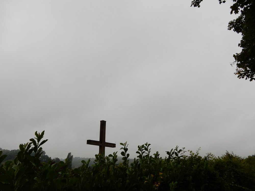 A l’extrémité sud de notre randonnée, nous découvrons à flanc de coteau le calvaire et ses cyprès, symbole de la verticalité, dominant la vallée de Bagat, avec au loin la ville de Montcuq, à nos pieds la vallée de la petit Barguelonne, les vergers de pruniers et au nord-ouest le château de Folmont.