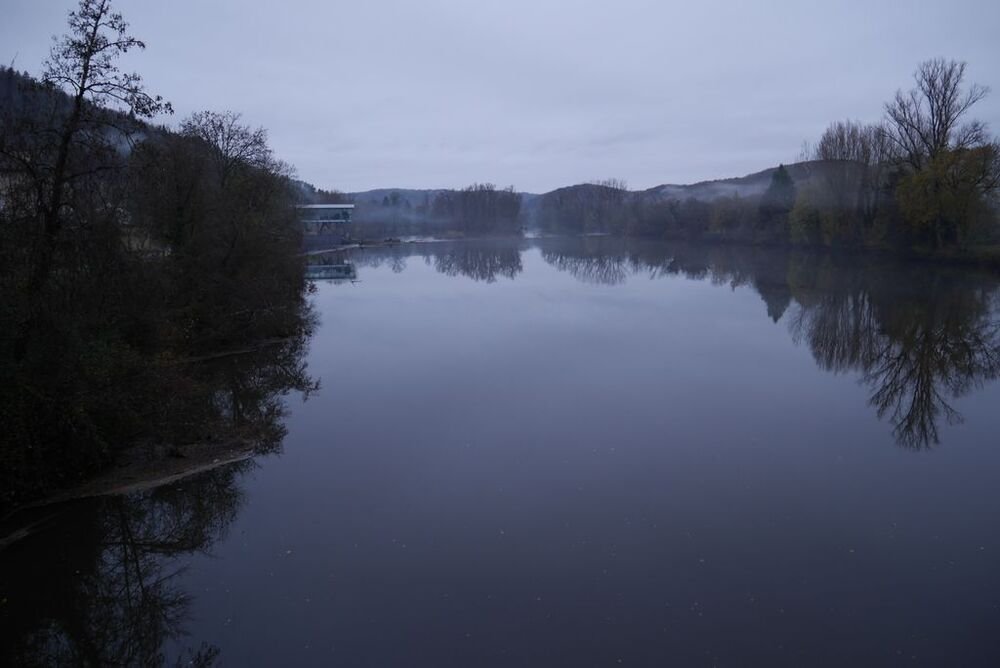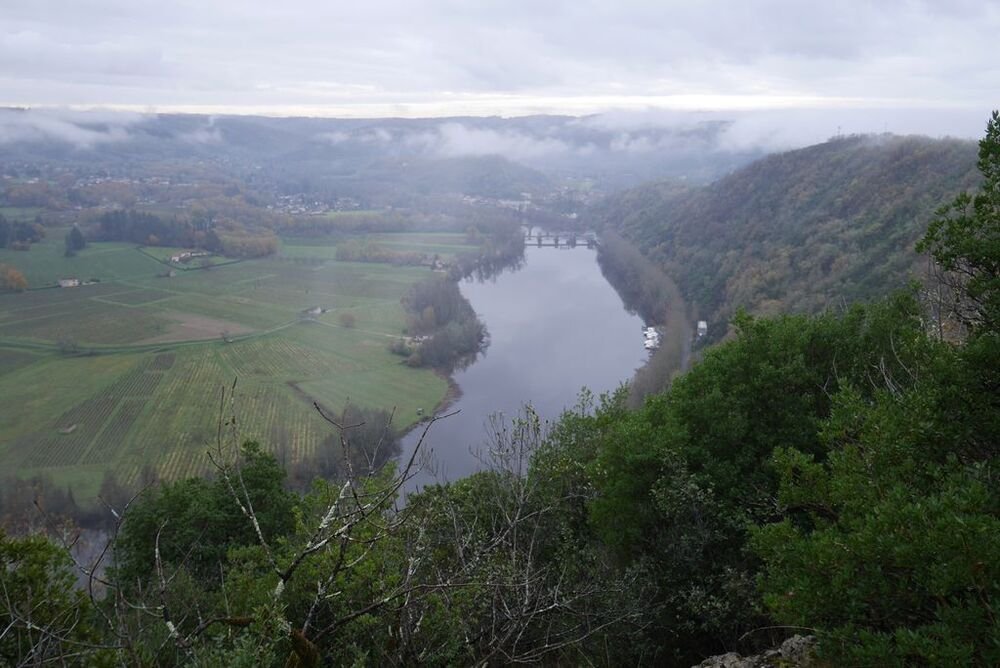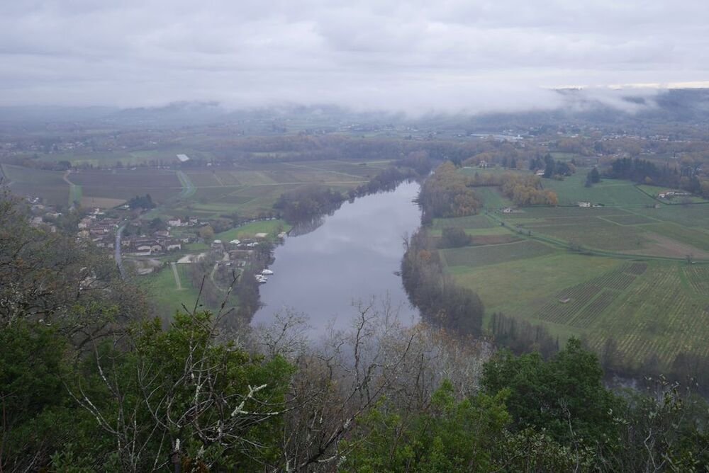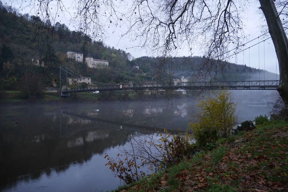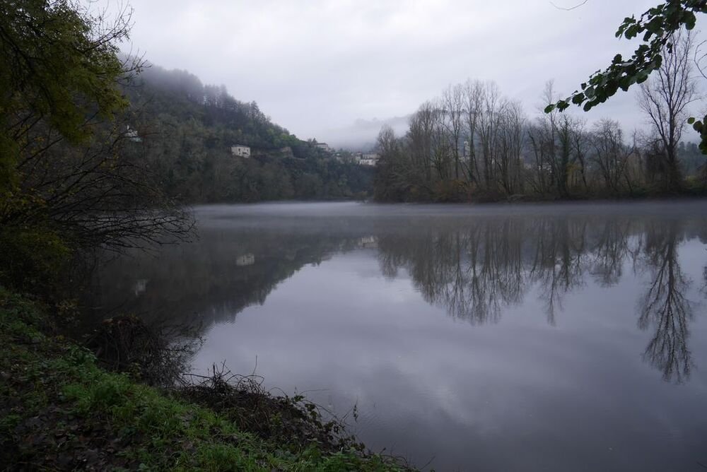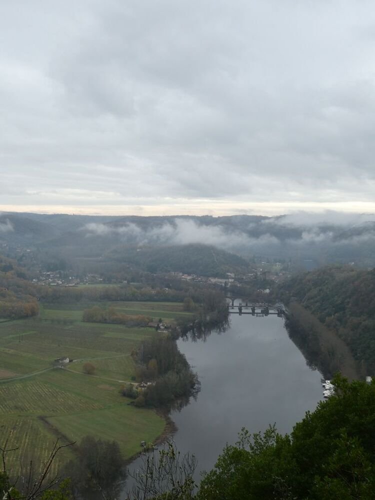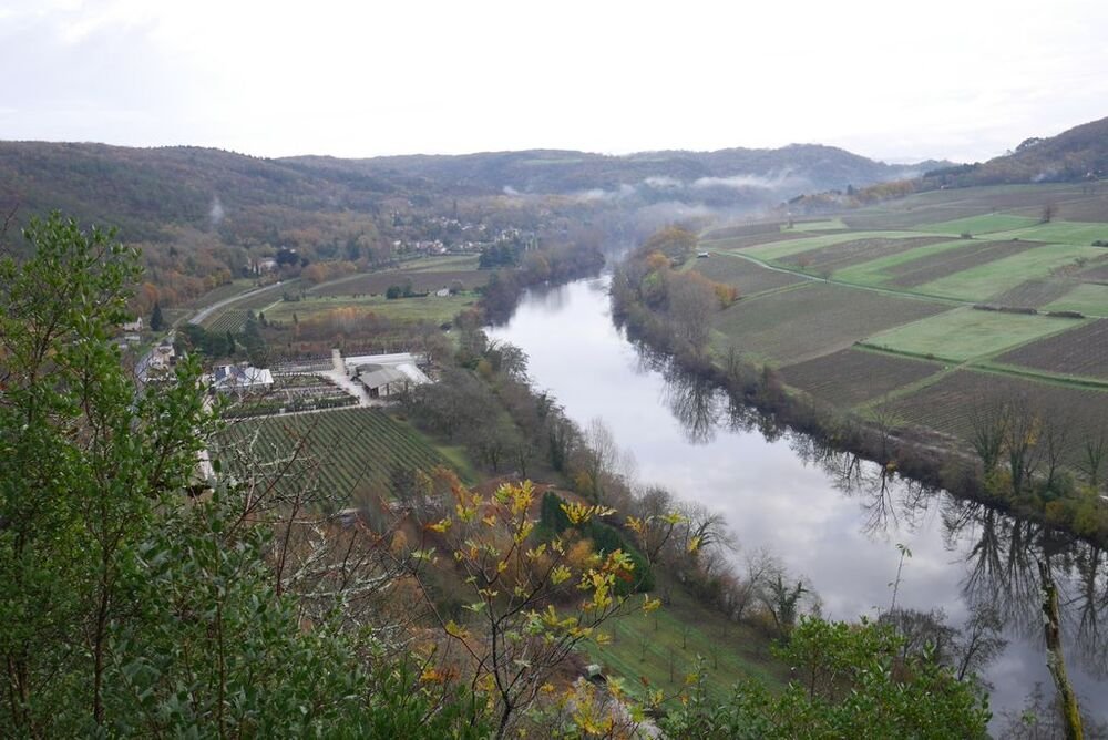 Celui-ci, hissé sur son éperon rocheux, se mire voluptueusement dans les eaux calmes du Lot, ceints de légères brumes.