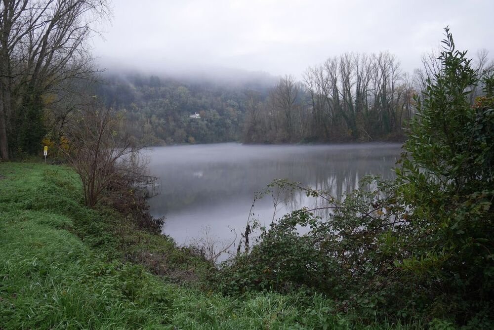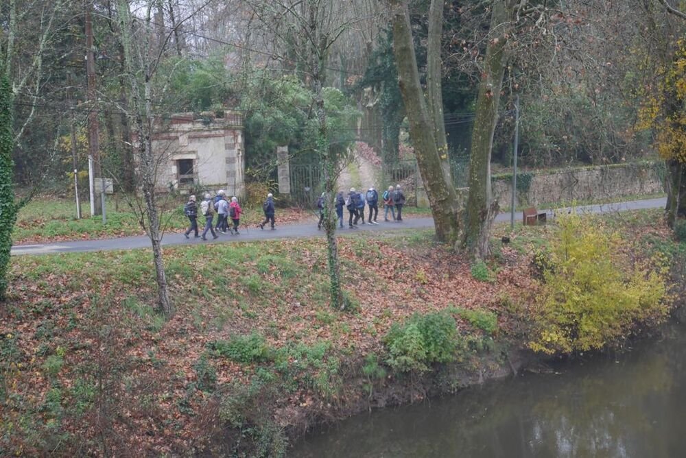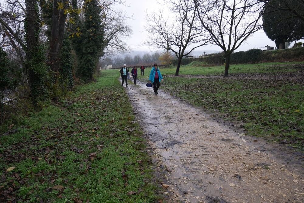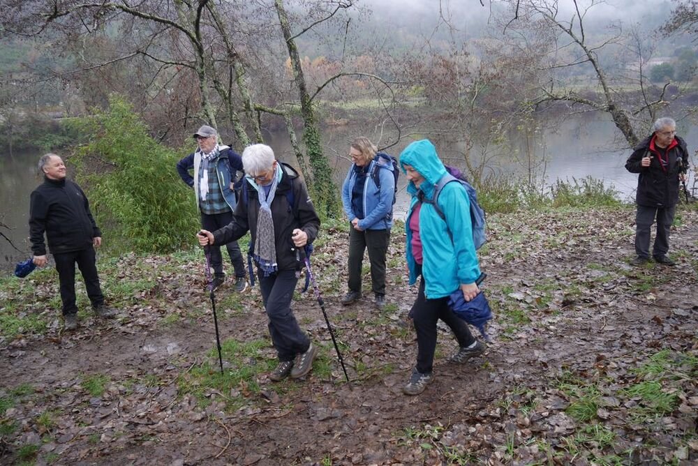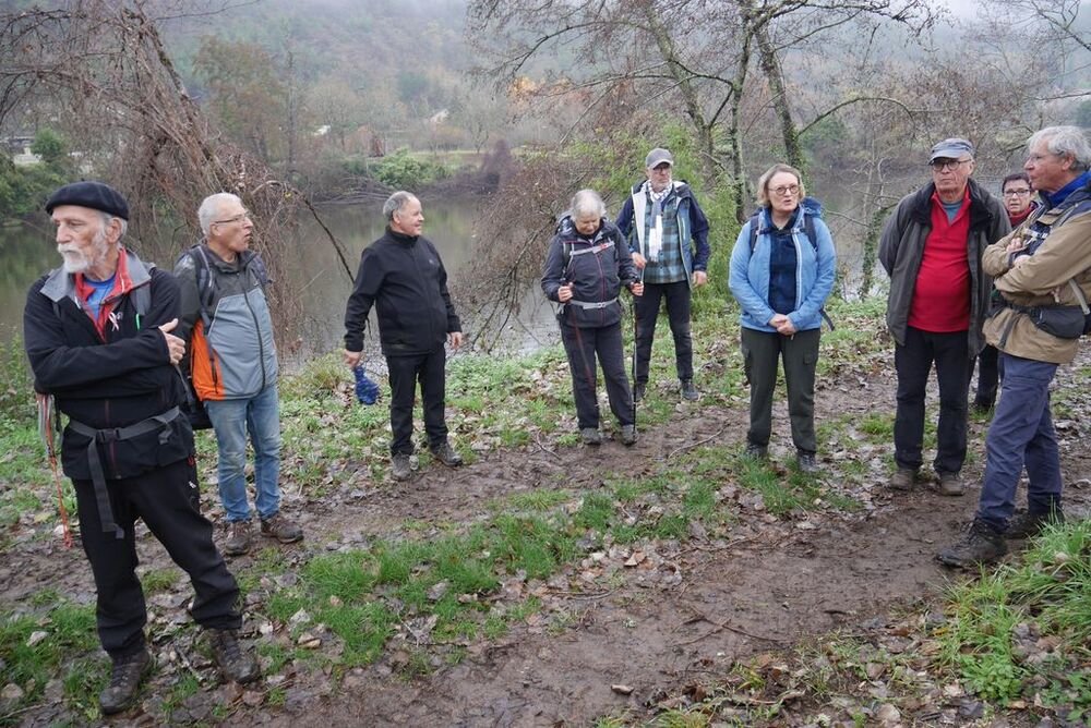 Le temps automnal et les brumes diffuses n’ont pas empêché 20 marcheuses et marcheurs de se retrouver à la passerelle d’Albas, au port d’Albas la Jolie, autrefois cœur économique du village.