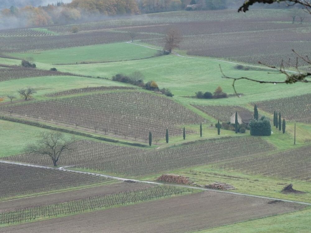 Contournant le château et sa vénérable « Conciergerie », nous entreprenons, plein est, une légère ascension, longeant les vignes du Domaine Pelvillain, avant de rejoindre la D 9.