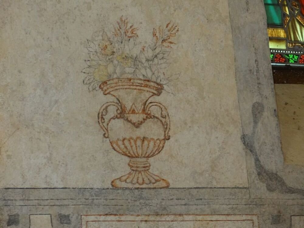 Construite dans sa partie ancienne au XIII -ème siècle, elle a fait l’objet d’une reconstruction de la voute en ogive au XVIII -ème siècle. Mr Calassou nous raconte les efforts de l’association, créée à cet effet pour sauver l’église des attaques du temps et plus particulièrement de l’humidité : le chevet plat étant à moitié enterré dans la colline. Puis il nous parle de l’inscription aux monuments historiques de l’église pour les peintures murales représentant 12 Saints dans le cœur, le chemin de croix réalisé par Virebent et la chaire en bois fait par un artisan local. Il termine par les vitraux latéraux et la superbe rosace du fronton fabriqués en verres épais par un artisan toulousain. Cet artisan a d’ailleurs une de ses œuvres à la cathédrale de Chartres.
